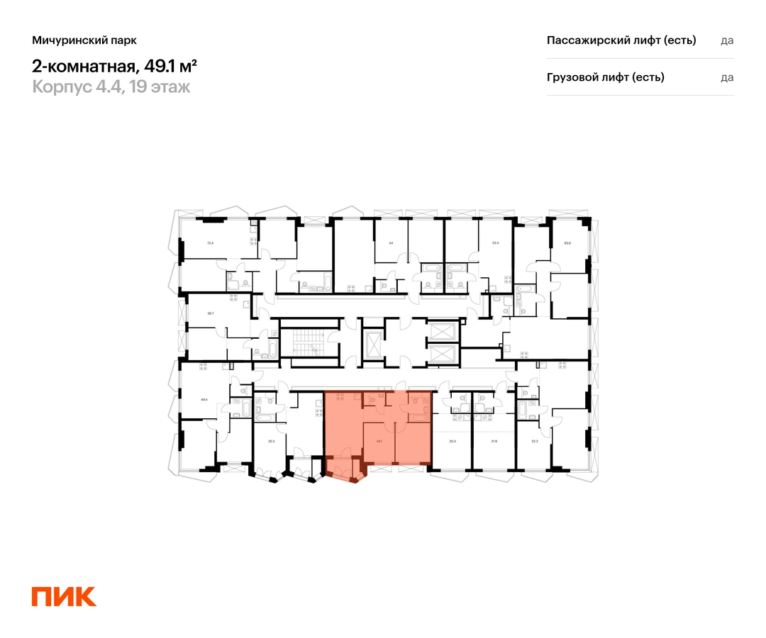В районе Очаково-Матвеевское продаётся 2-комнатная квартира квартира площадью 49.1 на 19 этаже 23 этажного дома (корпус, секция) в проекте ПИК «Мичуринский парк». Удобное расположение 7 минут пешком до станции метро «Озёрная». 3 минуты на автомобиле до МКАД и 20 минут до ТТК. 12 минут пешком до парка Школьников и 15 минут до Очаковского пруда. 20 минут на автомобиле до ТЦ «Океания». Особенности проекта «Мичуринский парк» — проект с корпусами «Серии плюс» в районе, где создана качественная среда для полноценной жизни, работы и отдыха. А удобные и разнообразные планировки позволят каждому выбрать квартиру для собственного сценария жизни. Преимущества проекта: Отделка: Готовая Особенности планировки: Кухня-ниша, Кухня-гостиная, Два и более санузла, Лоджия, Умная планировка Дизайнерские лобби с зонами ожидания и колясочными. Две школы, два детских сада и МФК ЛЕЙКС на территории проекта. Большое многофункциональное пространство МультиХаб «Клевер». Дворы-парки с местами для отдыха, детскими и спортивными площадками. Подземный паркинг. Артикул _О застройщике