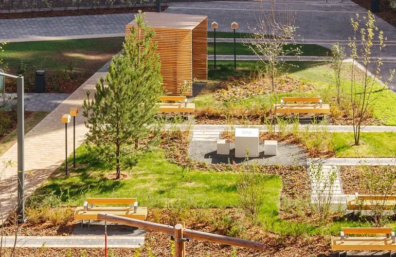 Проект расположен в Матвеевском кластере — новом современном районе, который будет состоять из четырёх кварталов: «Новое Очаково», «Матвеевский парк», «Большая Очаковская 2» и Vangarden. Перемещаться между кварталами будет удобно по 350-метровому пешеходному мосту, под которым появится уютный зелёный парк. У проектов будет общая инфраструктура и благоустроенная территория. Уже открыта часть пешеходного бульвара, который строится по проекту британского бюро Gillespies. Здесь можно гулять после работы, играть с детьми, заниматься спортом и отдыхать у сухого фонтана с ночной подсветкой. В будущем в кластере появится пешеходный мост, который соединит жилые кварталы. В начале бульвара расположен вестибюль станции метро «Аминьевская», а в будущем также появится торговый центр. Отдыхать и заряжаться адреналином жители кластера смогут в SportHub Extreme — зоне площадью более 3 500 м², рассчитанной на любителей экстремальных видов спорта. Здесь будут площадки для безопасного катания на скейтбордах, роликах, самокатах и велосипедах. Для командных игр — например, мини-футбола и стритбола — появится отдельная универсальная площадка с покрытием из резины. Помимо этого, на территории «Матвеевского кластера» начнут работу пять новых школ, шесть детских садов, и комьюнити-центр ОМА.