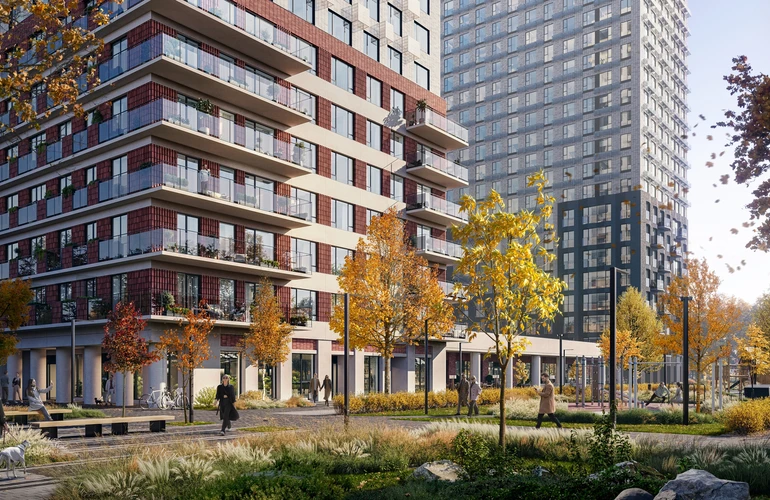 На территории квартала откроется собственный детский сад для 225 малышей. Во дворе — приватный парк с игровой и спортивной площадкой. На первых этажах откроются магазины и полезные сервисы.