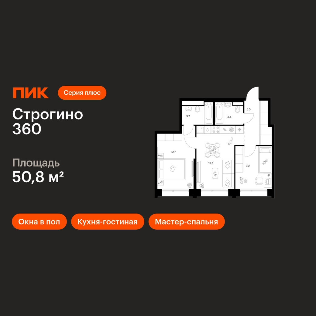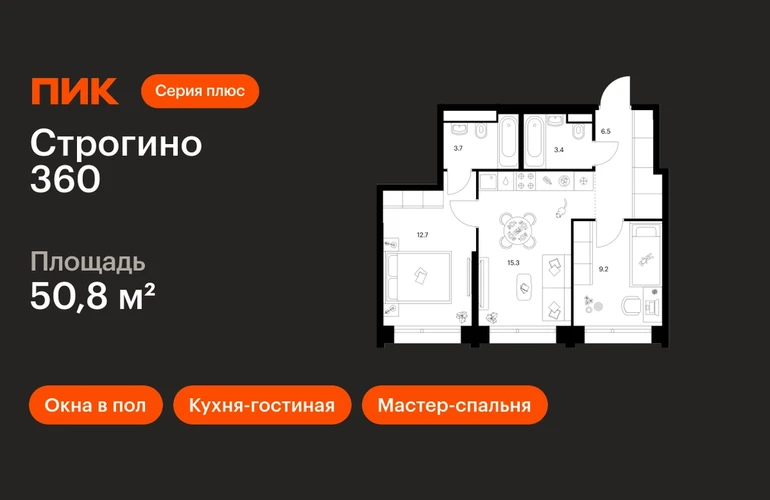 Продаётся 2-комн.квартира площадью 50.80 кв.м на 16 этаже 30 этажного дома (Корпус 1.2, секция 1) проекта ПИК Строгино 360. Светлый просторный подъезд на уровне земли, функциональная планировка, большие окна, с отделкой. «Строгино 360» — флагманский проект ПИК в 20 минутах от центра Москвы, в одном из самых экологичных районов столицы. В 2027 году — к моменту заселения первых домов — в 10 минутах пешком от проекта откроется станция метро «Липовая роща». В квартале всё настроено на 360 градусов: квартиры с террасами и панорамными видами на лес и воду, спорт — от йоги до яхтинга — и деловой кластер, где будет создана комфортная среда для работы и бизнеса. Всего в 10 минутах от проекта расположен ТЦ «Вегас Сити» с десятками магазинов в интерьерах городских улиц, каток, кинотеатр, рестораны и аттракционы. Архитектура и гранд-лобби Архитектура квартала органично вписывается в окружающий ландшафт. В отделке используются натуральные материалы и спокойные цвета, которые дополняют природные пространства вокруг квартала. Специально для «Строгино 360» бюро разработало авторский дизайн гранд-лобби, где можно встретиться с близкими или партнёрами, поработать или поиграть с детьми. Для этого здесь появятся коворкинг, ресепшен, пространства для отдыха, игровая для детей и гостевой санузел. Инфраструктура проекта «Строгино 360» — больше чем жилой квартал. Здесь создана вся необходимая инфраструктура для комфортной и насыщенной жизни. Главной артерией станет пешеходный бульвар, длиной 3,4 км — с магазинами, кафе и продуманными пространствами для спорта и отдыха. Для детей в партнёрстве с «Фондом развития Физтех-школ» при поддержке МФТИ мы построим образовательный центр. Планировки В доминанте проекта — корпусе 1.2 — вы найдёте квартиры с террасами и живописными видами на на Москву-реку, Строгинский затон и Серебряный Бор. А в малоэтажных корпусах 1.1.1–1.1.3 создана уютная камерная атмосфера благодаря небольшому количеству квартир на этаже. Также здесь вы можете выбрать квартиру с системой умного дома. Артикул - 1052251О застройщике