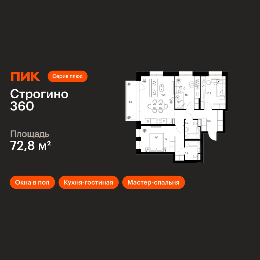 Продаётся 3-комн.квартира площадью 72.80 кв.м на 3 этаже 10 этажного дома (Корпус 1.1.2, секция 2) проекта ПИК Строгино 360. Светлый просторный подъезд на уровне земли, функциональная планировка, большие окна. «Строгино 360» — флагманский проект ПИК в 20 минутах от центра Москвы, в одном из самых экологичных районов столицы. В 2027 году — к моменту заселения первых домов — в 10 минутах пешком от проекта откроется станция метро «Липовая роща». В квартале всё настроено на 360 градусов: квартиры с террасами и панорамными видами на лес и воду, спорт — от йоги до яхтинга — и деловой кластер, где будет создана комфортная среда для работы и бизнеса. Всего в 10 минутах от проекта расположен ТЦ «Вегас Сити» с десятками магазинов в интерьерах городских улиц, каток, кинотеатр, рестораны и аттракционы. В квартале открылось «Пространство ПИК» — новый формат знакомства с проектом, в котором задействованы разные органы чувств. Архитектура и гранд-лобби Архитектура квартала органично вписывается в окружающий ландшафт. В отделке используются натуральные материалы и спокойные цвета, которые дополняют природные пространства вокруг квартала. Специально для «Строгино 360» бюро разработало авторский дизайн гранд-лобби, где можно встретиться с близкими или партнёрами, поработать или поиграть с детьми. Для этого здесь появятся коворкинг, ресепшен, пространства для отдыха, игровая для детей и гостевой санузел. Инфраструктура проекта «Строгино 360» — больше чем жилой квартал. Здесь создана вся необходимая инфраструктура для комфортной и насыщенной жизни. Главной артерией станет пешеходный бульвар, длиной 3,4 км — с магазинами, кафе и продуманными пространствами для спорта и отдыха. Для детей в партнёрстве с «Фондом развития Физтех-школ» при поддержке МФТИ мы построим образовательный центр. Планировки В доминанте проекта — корпусе 1.2 — вы найдёте квартиры с террасами и живописными видами на на Москву-реку, Строгинский затон и Серебряный Бор. А в малоэтажных корпусах 1.1.1–1.1.3 создана уютная камерная атмосфера благодаря небольшому количеству квартир на этаже. Также здесь вы можете выбрать квартиру с системой умного дома. Артикул - 1050831О застройщике