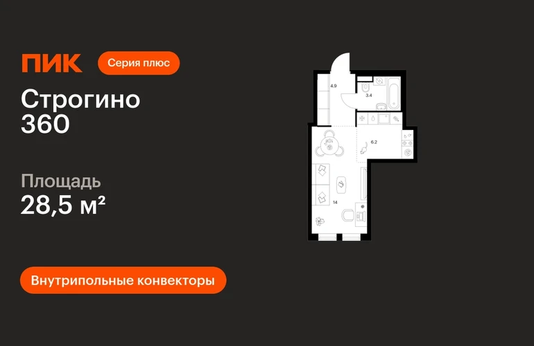 Продаётся квартира-студия площадью 28.50 кв.м на 12 этаже 30 этажного дома (Корпус 1.2, секция 1) проекта ПИК Строгино 360. Светлый просторный подъезд на уровне земли, функциональная планировка, большие окна, с отделкой. «Строгино 360» — флагманский проект ПИК в 20 минутах от центра Москвы, в одном из самых экологичных районов столицы. В 2027 году — к моменту заселения первых домов — в 10 минутах пешком от проекта откроется станция метро «Липовая роща». В квартале всё настроено на 360 градусов: квартиры с террасами и панорамными видами на лес и воду, спорт — от йоги до яхтинга — и деловой кластер, где будет создана комфортная среда для работы и бизнеса. Всего в 10 минутах от проекта расположен ТЦ «Вегас Сити» с десятками магазинов в интерьерах городских улиц, каток, кинотеатр, рестораны и аттракционы. Архитектура и гранд-лобби Архитектура квартала органично вписывается в окружающий ландшафт. В отделке используются натуральные материалы и спокойные цвета, которые дополняют природные пространства вокруг квартала. Специально для «Строгино 360» бюро разработало авторский дизайн гранд-лобби, где можно встретиться с близкими или партнёрами, поработать или поиграть с детьми. Для этого здесь появятся коворкинг, ресепшен, пространства для отдыха, игровая для детей и гостевой санузел. Инфраструктура проекта «Строгино 360» — больше чем жилой квартал. Здесь создана вся необходимая инфраструктура для комфортной и насыщенной жизни. Главной артерией станет пешеходный бульвар, длиной 3,4 км — с магазинами, кафе и продуманными пространствами для спорта и отдыха. Для детей в партнёрстве с «Фондом развития Физтех-школ» при поддержке МФТИ мы построим образовательный центр. Планировки В доминанте проекта — корпусе 1.2 — вы найдёте квартиры с террасами и живописными видами на на Москву-реку, Строгинский затон и Серебряный Бор. А в малоэтажных корпусах 1.1.1–1.1.3 создана уютная камерная атмосфера благодаря небольшому количеству квартир на этаже. Также здесь вы можете выбрать квартиру с системой умного дома. Артикул - 1052212О застройщике