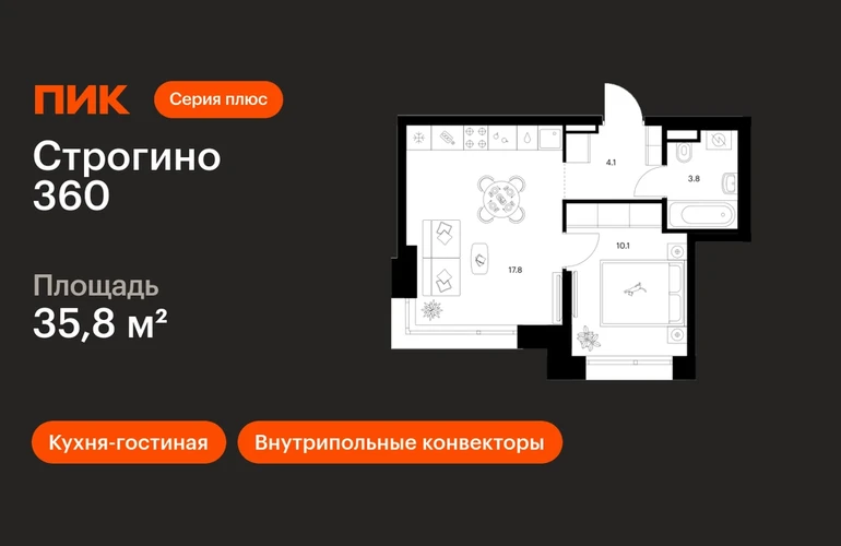 Продаётся 1-комн.квартира площадью 35.80 кв.м на 27 этаже 30 этажного дома (Корпус 1.2, секция 1) проекта ПИК Строгино 360. Светлый просторный подъезд на уровне земли, функциональная планировка, большие окна, с отделкой. «Строгино 360» — флагманский проект ПИК в 20 минутах от центра Москвы, в одном из самых экологичных районов столицы. В 2027 году — к моменту заселения первых домов — в 10 минутах пешком от проекта откроется станция метро «Липовая роща». В квартале всё настроено на 360 градусов: квартиры с террасами и панорамными видами на лес и воду, спорт — от йоги до яхтинга — и деловой кластер, где будет создана комфортная среда для работы и бизнеса. Всего в 10 минутах от проекта расположен ТЦ «Вегас Сити» с десятками магазинов в интерьерах городских улиц, каток, кинотеатр, рестораны и аттракционы. Архитектура и гранд-лобби Архитектура квартала органично вписывается в окружающий ландшафт. В отделке используются натуральные материалы и спокойные цвета, которые дополняют природные пространства вокруг квартала. Специально для «Строгино 360» бюро разработало авторский дизайн гранд-лобби, где можно встретиться с близкими или партнёрами, поработать или поиграть с детьми. Для этого здесь появятся коворкинг, ресепшен, пространства для отдыха, игровая для детей и гостевой санузел. Инфраструктура проекта «Строгино 360» — больше чем жилой квартал. Здесь создана вся необходимая инфраструктура для комфортной и насыщенной жизни. Главной артерией станет пешеходный бульвар, длиной 3,4 км — с магазинами, кафе и продуманными пространствами для спорта и отдыха. Для детей в партнёрстве с «Фондом развития Физтех-школ» при поддержке МФТИ мы построим образовательный центр. Планировки В доминанте проекта — корпусе 1.2 — вы найдёте квартиры с террасами и живописными видами на на Москву-реку, Строгинский затон и Серебряный Бор. А в малоэтажных корпусах 1.1.1–1.1.3 создана уютная камерная атмосфера благодаря небольшому количеству квартир на этаже. Также здесь вы можете выбрать квартиру с системой умного дома. Артикул - 1052348О застройщике