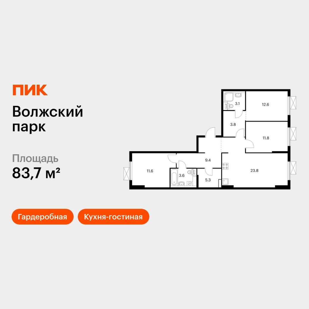 Продаётся 3-комн.квартира площадью 83.70 кв.м на 6 этаже 9 этажного дома (Корпус 6.1, секция 3) проекта ПИК Волжский парк. Светлый просторный подъезд на уровне земли, функциональная планировка, большие окна, с отделкой. Жилой район «Волжский парк» строится на юго-востоке Москвы. Отсюда до метро «Текстильщики» — 15 минут пешком, а до Садового кольца можно доехать за 10 минут. В проекте 15 жилых домов, детский сад, школа, подземные и надземные паркинги. Вокруг — обжитый район, где есть всё для комфортной жизни: удобный транспорт, детские сады, школы, поликлиники, магазины, кинотеатры и фитнес-клубы. Рядом есть места для отдыха и прогулок — парки, бульвары и пруды. А для любителей спорта — большой спортивный комплекс «Москвич» с бассейном, ледовым катком и большим количеством взрослых и детских секций. В проекте предусмотрена медленная зона для электросамокатов — с 7 утра до полуночи при въезде на территорию квартала скорость электросамокатов автоматически снижается до 15 км/ч. Артикул - 931995О застройщике