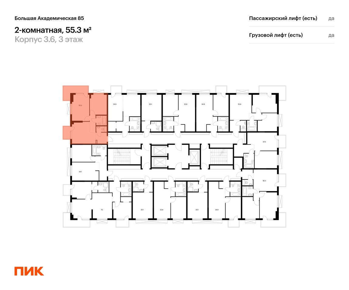 В Тимирязевском районе продаётся 2-комнатный апартамент квартира площадью 55.3 на 3 этаже 24 этажного дома (корпус, секция) в проекте ПИК «Большая Академическая 85». Удобное расположение 11 минут пешком до станции метро «Окружная». 11 минут пешком до станции МЦК «Лихоборы». 1 минута на автомобиле до СВХ, 9 минут до МКАД и 14 минут до ТТК. 30 минут пешком до Ботанического сада. Особенности проекта «Большая Академическая 85» — квартал ПИК в тихом и зелёном Тимирязевском районе Москвы. Проект, где собраны лучшие архитектурные и планировочные решения ПИК, состоит из домов переменной высоты от 11 до 24 этажей. Преимущества проекта: Отделка: Просторные и светлые холлы с быстрыми и тихими лифтами. Детский сад с начальной школой. Local Play — большое игровое пространство для детей. Подземный паркинг. АртикулО застройщике