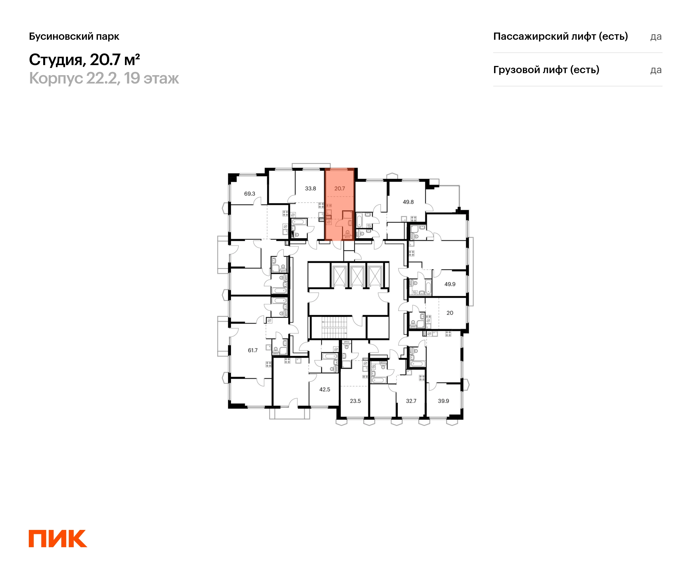 В районе Западное Дегунино (САО) продаётся студия квартира площадью 20.7 на 19 этаже 24 этажного дома (корпус, секция) в проекте ПИК «Бусиновский парк». Удобное расположение: 20 минут пешком до станций метро «Ховрино» и 15 минут от МЦД «Грачёвская». 5 минут на автомобиле до МКАД и СВХ. 5 минут на машине до живописных парков: «Ангарские пруды», Химкинский лесопарк, Грачёвский парк. 20 минут на автомобиле до ТЦ «Метрополис» и 15 мин до ТЦ «Речной». Особенности проекта Масштабный квартал с корпусами «Серии плюс», где собраны лучшие архитектурные и планировочные решения ПИК. Проект выглядит ярко и современно благодаря уникальным фасадам зданий, которые разработали ведущие российские архитектурные бюро. А удобные и разнообразные планировки позволят каждому выбрать квартиру для собственного сценария жизни. Преимущества проекта: Отделка: Готовая Особенности планировки: Окна в пол, Внутрипольные конвекторы Дизайнерские лобби с зонами ожидания, колясочными и гостевыми санузлами. 4 детских сада и 2 школы на территории жилого комплекса. MultiHub «Атлас» — уникальное пространство для отдыха, игры, спорта и прогулок. Общественная терраса для жителей проекта на 30-м этаже 1.4 корпуса. Двухуровневый подземный и наземные паркинги. АртикулО застройщике