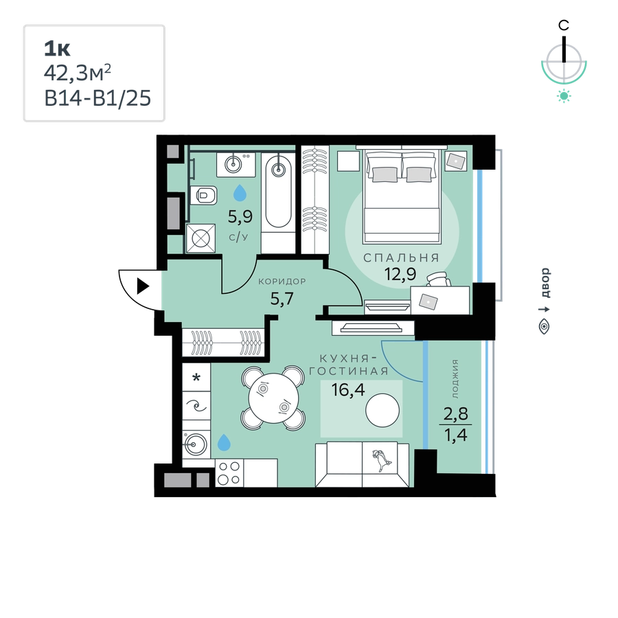 В продаже — однокомнатная квартира с чистовой отделкой, общей площадью 42,3 кв. м. Квартира расположена на четвертом этаже десятиэтажного корпуса Балансд в квартале В14 нового района СберСити, который строит Сбер.<br><br>Архитектуру корпусов квартала разработало итальянское бюро. В облике отражена природная палитра: для фасадов выбраны небесно-голубой и травянистый зелёный оттенки. Декоративные металлические рамы окон и эркеры служат выразительными акцентами. Из окон открываются виды на парк и закаты над рекой. Всего в трёх минутах пешком — набережная, а рядом — главный парк СберСити. Во дворах без машин — много зелени, деревьев, кустарников и многолетних растений, детские площадки и тихие зоны отдыха.<br><br>Дом возводится по технологии монолитного строительства. Фасады отделываются терракотовыми и алюминиевыми композитными панелями. В квартирах будет установлена система «умный дом», объединяющая управление квартирой, домом и прилегающей территорией. Жильцы смогут регулировать климат и освещение голосом или со смартфона, а также управлять сценариями освещения по заданным параметрам. Повышенная шумоизоляция и двухкамерные стеклопакеты с алюминиевым профилем обеспечивают комфорт и тишину. В санузлах установлен тёплый пол.<br><br>В доме предусмотрены:<br>– уютное лобби,<br>– лапомойка,<br>– колясочная и велосипедная комната на первом этаже,<br>– подземный паркинг.<br><br>СберСити — это новый жилой и деловой район на западе Москвы, в одном из самых экологически чистых и престижных мест столицы. Это первая в России и крупнейшая в мире инновационная городская среда, созданная по международным стандартам зелёного проектирования. Здесь внедряются решения в области энергоснабжения, вакуумного мусороудаления, тестирования зелёных технологий, а в дальнейшем — системы искусственного интеллекта для управления домами и городской инфраструктурой.<br>Строительство проекта началось в 2021 году, заселение первых корпусов — с лета 2024-го. Общая площадь территории — 461 га, из них более 2,5 млн кв. м жилья и около 833 тыс. кв. м офисных пространств. Будет построено 7 школ, 13 детских садов и 2 поликлиники. В СберСити будут жить 65 тыс. человек и работать 70 тыс. Развитием территории занимается АО «Рублёво-Архангельское», входящее в группу Сбер.<br>СберСити — место, где хочется жить, работать и растить детей.<br><br>Переезжайте в СберСити!О застройщике