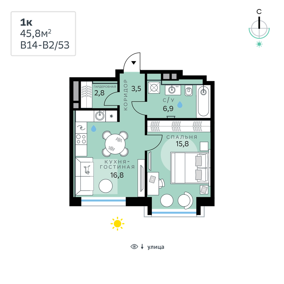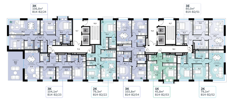 В продаже — однокомнатная квартира, общей площадью 45,8 кв. м. Квартира расположена на седьмом этаже девятиэтажного корпуса Балансд в квартале В14 нового района СберСити, который строит Сбер.<br><br>Архитектуру корпусов кварталов разработало итальянское бюро. В облике отражена природная палитра: для фасадов выбраны небесно-голубой и травянистый зелёный оттенки. Декоративные металлические рамы окон и эркеры служат выразительными акцентами. Из окон открываются виды на парк и закаты над рекой. Всего в трёх минутах пешком — набережная, а рядом — главный парк СберСити. Во дворах без машин — много зелени, деревьев, кустарников и многолетних растений, детские площадки и тихие зоны отдыха.<br><br>Дом возводится по технологии монолитного строительства. Фасады отделываются терракотовыми и алюминиевыми композитными панелями. В квартирах будет установлена система «умный дом», объединяющая управление квартирой, домом и прилегающей территорией. Жильцы смогут регулировать климат и освещение голосом или со смартфона, а также управлять сценариями освещения по заданным параметрам. Повышенная шумоизоляция и двухкамерные стеклопакеты с алюминиевым профилем обеспечивают комфорт и тишину.<br><br>В доме предусмотрены:<br>– уютное лобби,<br>– лапомойка,<br>– колясочная и велосипедная комната на первом этаже,<br>– подземный паркинг.<br><br>СберСити — это новый жилой и деловой район на западе Москвы, в одном из самых экологически чистых и престижных мест столицы. Это первая в России и крупнейшая в мире инновационная городская среда, созданная по международным стандартам зелёного проектирования. Здесь внедряются решения в области энергоснабжения, вакуумного мусороудаления, тестирования зелёных технологий, а в дальнейшем — системы искусственного интеллекта для управления домами и городской инфраструктурой.<br>Строительство проекта началось в 2021 году, заселение первых корпусов — с лета 2024-го. Общая площадь территории — 461 га, из них более 2,5 млн кв. м жилья и около 833 тыс. кв. м офисных пространств. Будет построено 7 школ, 13 детских садов и 2 поликлиники. В СберСити будут жить 65 тыс. человек и работать 70 тыс. Развитием территории занимается АО «Рублёво-Архангельское», входящее в группу Сбер.<br>СберСити — место, где хочется жить, работать и растить детей.<br><br>Переезжайте в СберСити!О застройщике