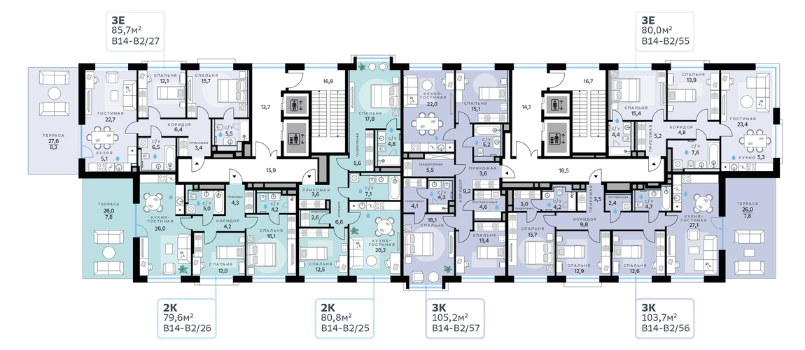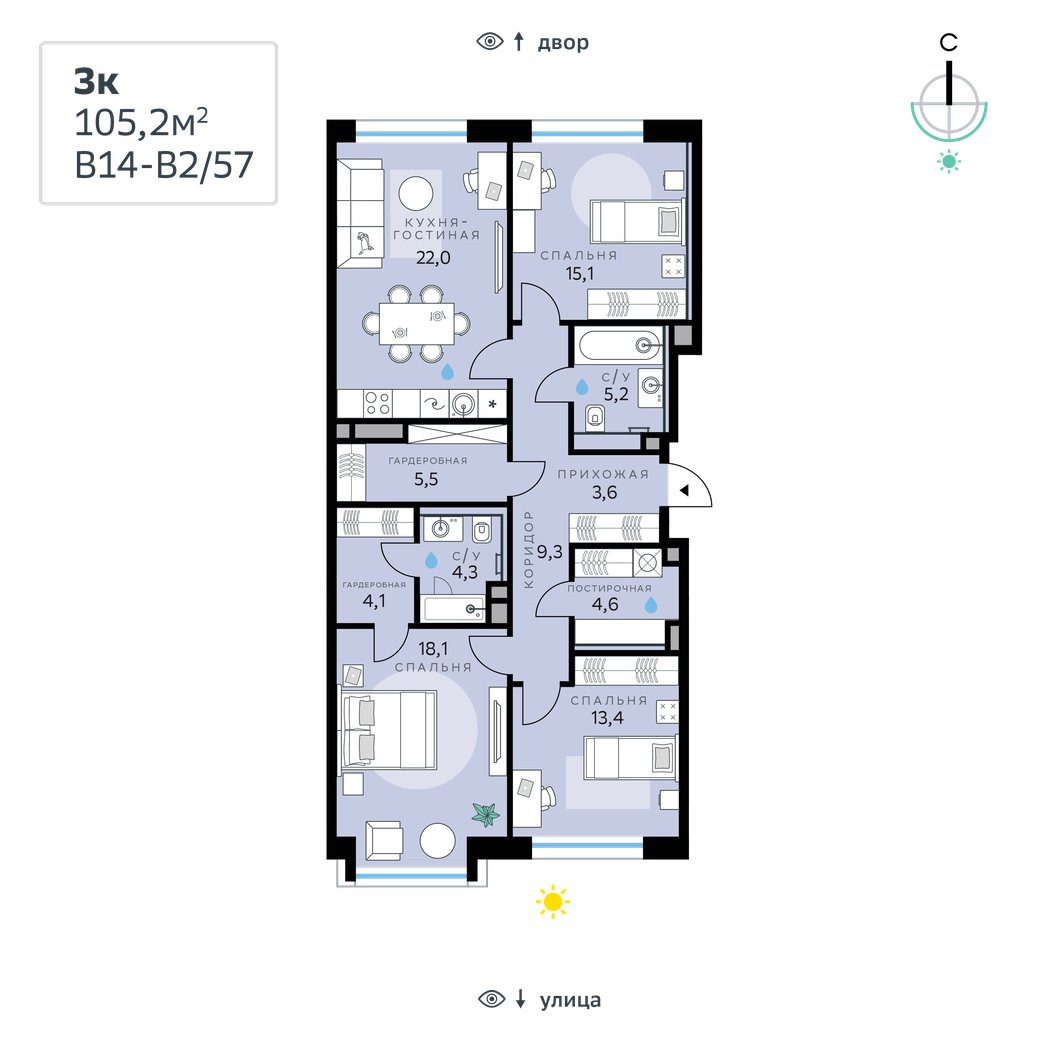 В продаже — трехкомнатная квартира, общей площадью 105,2 кв. м. Квартира расположена на восьмом этаже девятиэтажного корпуса Балансд в квартале В14 нового района СберСити, который строит Сбер.<br><br>Архитектуру корпусов кварталов разработало итальянское бюро. В облике отражена природная палитра: для фасадов выбраны небесно-голубой и травянистый зелёный оттенки. Декоративные металлические рамы окон и эркеры служат выразительными акцентами. Из окон открываются виды на парк и закаты над рекой. Всего в трёх минутах пешком — набережная, а рядом — главный парк СберСити. Во дворах без машин — много зелени, деревьев, кустарников и многолетних растений, детские площадки и тихие зоны отдыха.<br><br>Дом возводится по технологии монолитного строительства. Фасады отделываются терракотовыми и алюминиевыми композитными панелями. В квартирах будет установлена система «умный дом», объединяющая управление квартирой, домом и прилегающей территорией. Жильцы смогут регулировать климат и освещение голосом или со смартфона, а также управлять сценариями освещения по заданным параметрам. Повышенная шумоизоляция и двухкамерные стеклопакеты с алюминиевым профилем обеспечивают комфорт и тишину.<br><br>В доме предусмотрены:<br>– уютное лобби,<br>– лапомойка,<br>– колясочная и велосипедная комната на первом этаже,<br>– подземный паркинг.<br><br>СберСити — это новый жилой и деловой район на западе Москвы, в одном из самых экологически чистых и престижных мест столицы. Это первая в России и крупнейшая в мире инновационная городская среда, созданная по международным стандартам зелёного проектирования. Здесь внедряются решения в области энергоснабжения, вакуумного мусороудаления, тестирования зелёных технологий, а в дальнейшем — системы искусственного интеллекта для управления домами и городской инфраструктурой.<br>Строительство проекта началось в 2021 году, заселение первых корпусов — с лета 2024-го. Общая площадь территории — 461 га, из них более 2,5 млн кв. м жилья и около 833 тыс. кв. м офисных пространств. Будет построено 7 школ, 13 детских садов и 2 поликлиники. В СберСити будут жить 65 тыс. человек и работать 70 тыс. Развитием территории занимается АО «Рублёво-Архангельское», входящее в группу Сбер.<br>СберСити — место, где хочется жить, работать и растить детей.<br><br>Переезжайте в СберСити!О застройщике