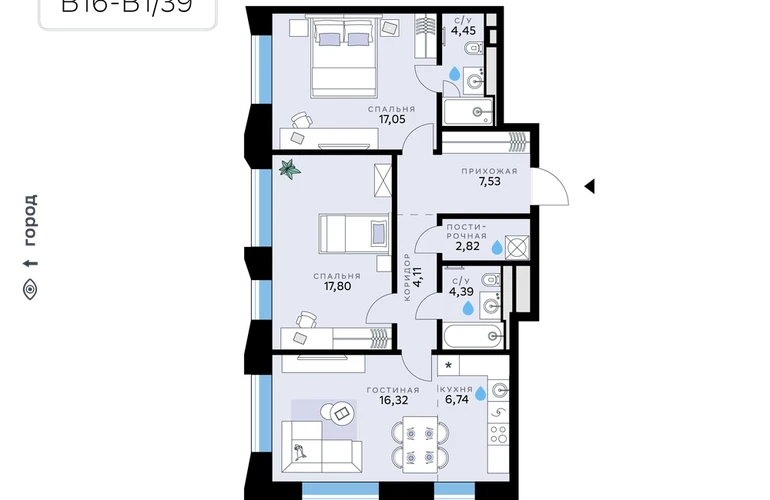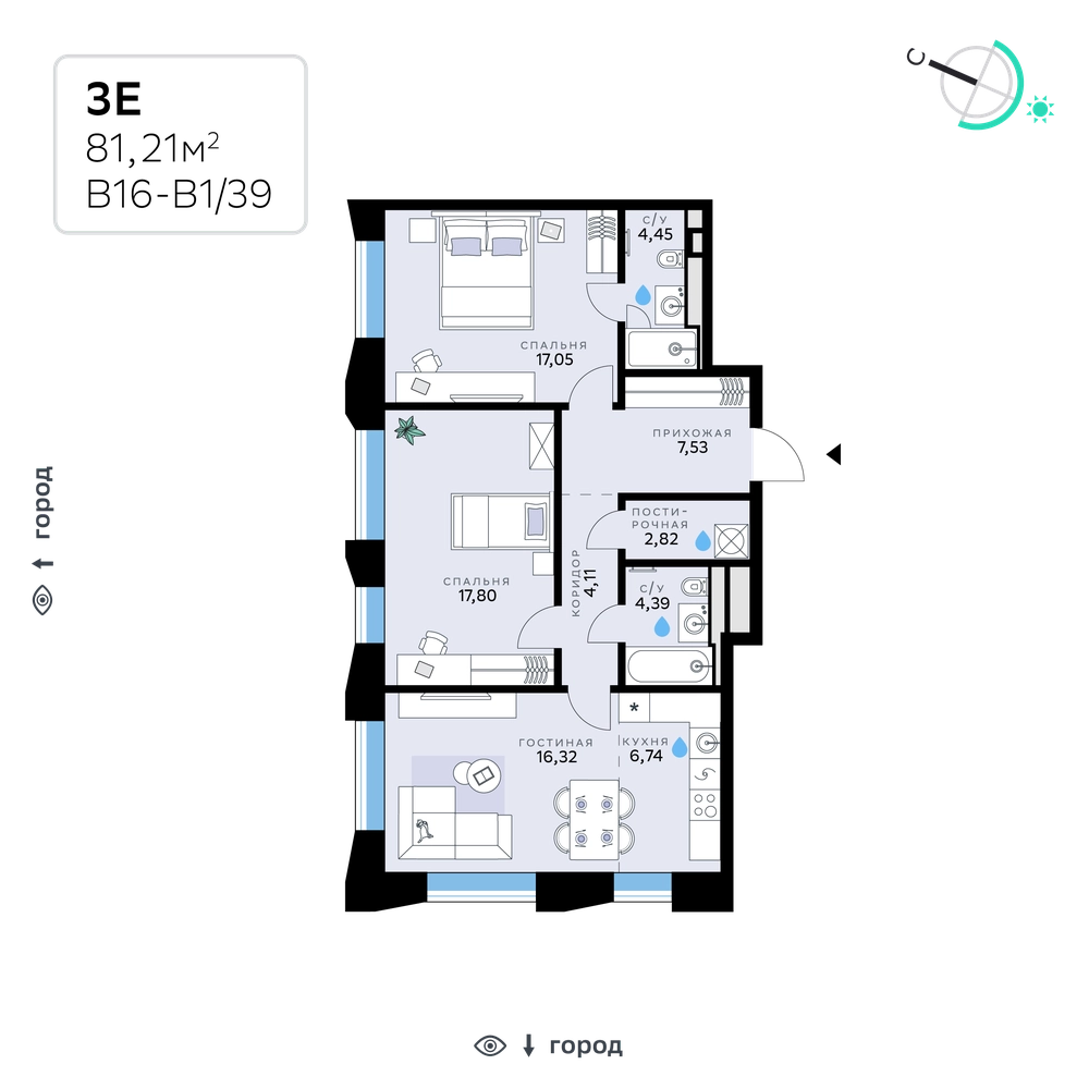 В продаже — двухкомнатная квартира с чистовой отделкой, общей площадью 81,21 кв. м. Квартира расположена на втором этаже восьмиэтажного корпуса Балансд в квартале В16 нового района СберСити, который строит Сбер.<br><br>Архитектуру квартала В16 создало итальянское бюро ARCHEA middle east: каждый дом узнаваем, но вместе они складываются в спокойный, цельный ансамбль. В облицовке сочетаются тёплые оттенки кирпича и металла, за счёт игры фактур фасады выглядят живыми и меняются в разное время дня. Строгая геометрия поддерживает ритм города, а мягкая природная палитра помогает чувствовать себя дома, а не в деловом квартале.<br>Дом возводится по технологии монолитного строительства. Все квартиры передаются с чистовой отделкой. Отделка предлагается на выбор в трёх стилях — Новая классика, Скандинавский и Средиземноморский — в нескольких цветовых решениях.<br>В квартирах предустановлена система «умный дом», связывающая квартиру, дом и прилегающую территорию. Жильцы могут регулировать климат и освещение голосом или со смартфона, предусмотрена защита от протечек.<br>Квартал состоит из девяти домов средней этажности — от 7 до 10 этажей. Корпуса формируют большой внутренний двор площадью два гектара. Во дворе предусмотрены зоны для разных сценариев: просторные площадки для детей, пространства для активного досуга и спорта, тихие места для отдыха и спокойного времени, а также удобные рабочие места под открытым небом. Здесь легко найти своё — для жизни, здоровья и занятий тем, что действительно нравится.<br>В доме:<br>– уютное лобби с зоной ожидания,<br>– лапомойка,<br>– санузел,<br>– помещение для хранения колясок и велосипедов,<br>– подземный паркинг.<br><br>СберСити — это новый жилой и деловой район на западе Москвы, в одном из самых экологически чистых и престижных мест столицы. Это первая в России и крупнейшая в мире инновационная городская среда, созданная по международным стандартам зелёного проектирования. Здесь внедряются решения в области энергоснабжения, вакуумного мусороудаления, тестирования зелёных технологий, а в дальнейшем — системы искусственного интеллекта для управления домами и городской инфраструктурой.<br>Строительство проекта началось в 2021 году, заселение первых корпусов — с лета 2024-го. Общая площадь территории — 461 га, из них более 2,5 млн кв. м жилья и около 833 тыс. кв. м офисных пространств. Будет построено 7 школ, 13 детских садов и 2 поликлиники. В СберСити будут жить 65 тыс. человек и работать 70 тыс. Развитием территории занимается АО «Рублёво-Архангельское», входящее в группу Сбер.<br>СберСити — место, где хочется жить, работать и растить детей.<br><br>Переезжайте в СберСити!О застройщике
