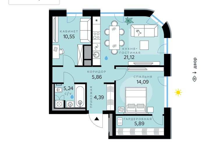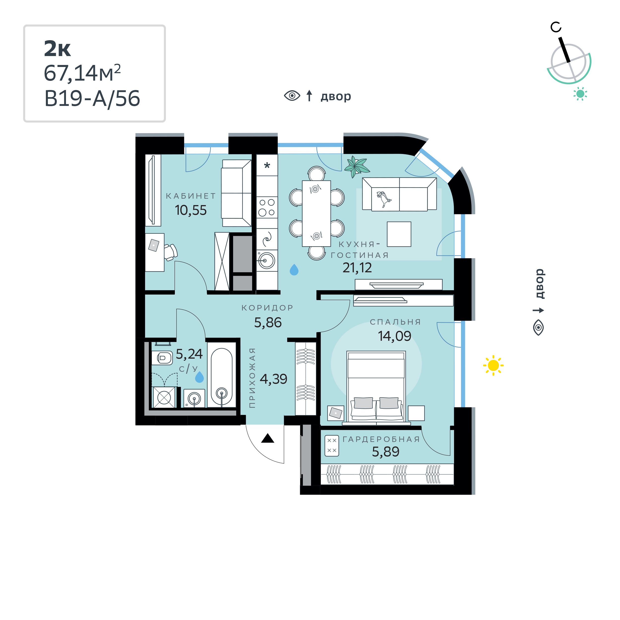 В продаже — двухкомнатная квартира, общей площадью 67,14 кв. м. Квартира расположена на первом этаже двенадцатиэтажной секции корпуса класса Адвансд в новом районе СберСити, который строит Сбер. Дом находится на второй береговой линии Москвы-реки.<br><br>Отделка фасадов корпуса класса Адвансд выполнена из природного камня, глазурованной плитки и алюминия. Дом возводится по технологии монолитного строительства. В квартире проведены работы по улучшению шумоизоляции, установлены двухкамерные стеклопакеты с низкоэмиссионными стёклами, минимизирующими теплопотери. Высота окон — от 3 до 3,25 м.<br><br>В доме расположены:<br>• круглосуточный консьерж-сервис,<br>• уютное лобби,<br>• лапомойка,<br>• общественная гостиная,<br>• коворкинг для жителей,<br>• собственная спортивная студия,<br>• колясочная и велосипедная комната на первом этаже,<br>• детская игровая комната,<br>• подземный паркинг.<br><br>СберСити — это новый жилой и деловой район на западе Москвы, в одном из самых экологически чистых и престижных мест столицы. Это первая в России и крупнейшая в мире инновационная городская среда, созданная по международным стандартам зелёного проектирования. Здесь внедряются решения в области энергоснабжения, вакуумного мусороудаления, тестирования зелёных технологий, а в дальнейшем — системы искусственного интеллекта для управления домами и городской инфраструктурой.<br>Строительство проекта началось в 2021 году, заселение первых корпусов — с лета 2024-го. Общая площадь территории — 461 га, из них более 2,5 млн кв. м жилья и около 833 тыс. кв. м офисных пространств. Будет построено 7 школ, 13 детских садов и 2 поликлиники. В СберСити будут жить 65 тыс. человек и работать 70 тыс. Развитием территории занимается АО «Рублёво-Архангельское», входящее в группу Сбер.<br>СберСити — место, где хочется жить, работать и растить детей.<br><br>Переезжайте в СберСити!О застройщике