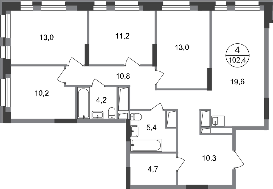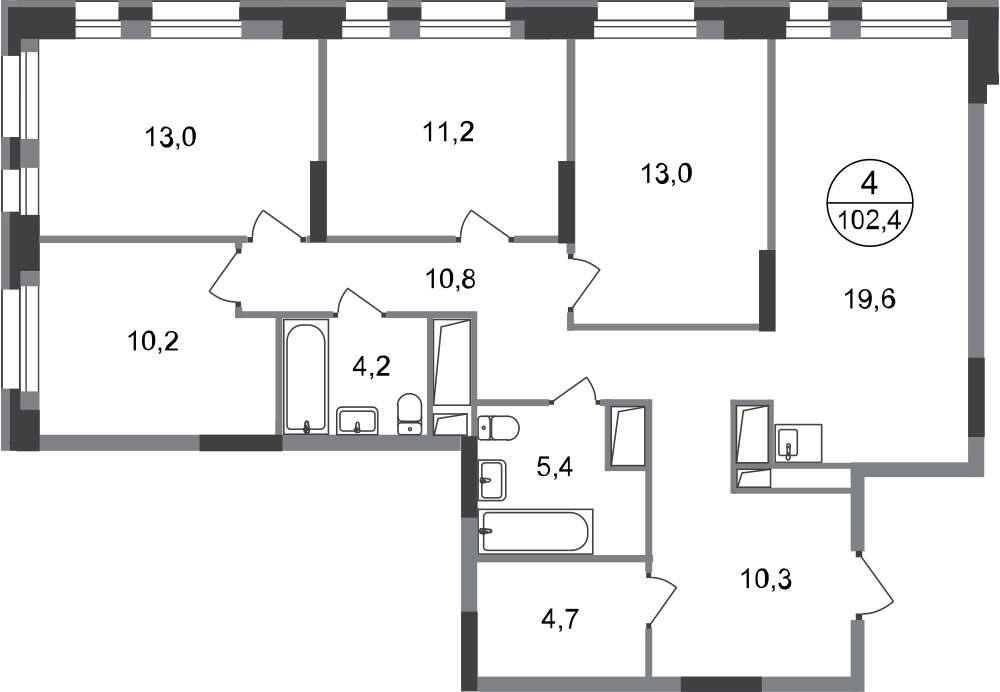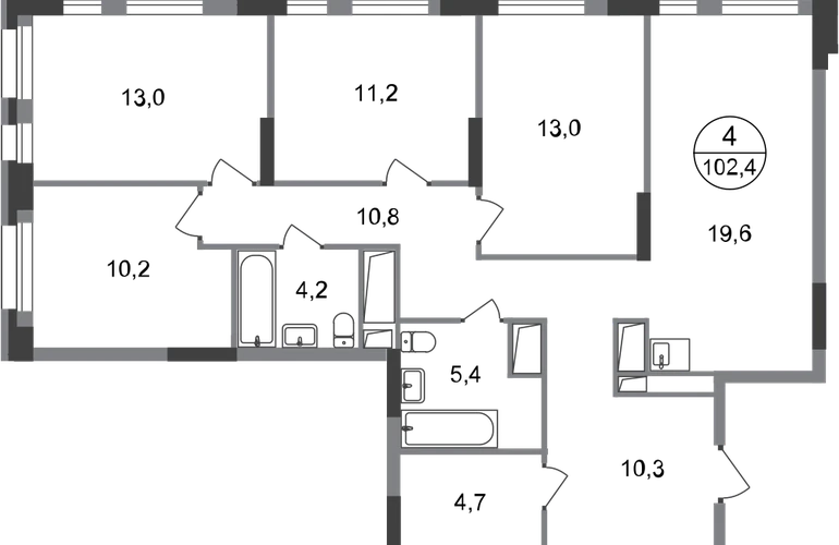 Продается четырехкомнатная квартира без отделки в 7 фазе города-парка "Первый Московский". Общая площадь квартиры - 102,4 кв. м, этаж 19 из 20. Срок сдачи - 1 квартал 2027 года. Тип дома - монолитный. ТОЛЬКО ДО 28 ФЕВРАЛЯ: • Рассрочка до 13 месяцев с первоначальным взносом от 10% • Ежемесячный платеж от 50 000 руб. *подробную информацию по скидкам и акциям уточняйте в отделе продаж. Корпус состоит из 3 секций. Город-парк "Первый Московский" расположен всего в 7 км по Киевскому шоссе от МКАД на территории Новой Москвы. Из города-парка прямой выезд на Киевское шоссе и трассу Солнцево-Бутово-Варшавское шоссе. ТРАНСПОРТНАЯ ДОСТУПНОСТЬ: - 5 мин. на личном автомобиле или 10 мин. на автобусе №189 и №147 до станции метро «Филатов Луг» - 25 мин. пешком до станции метро «Филатов Луг» ИНФРАСТРУКТУРА: Около 7 фазы запланировано строительство детского сада, школы, 2 многоуровневых паркингов. Также на территории проекта есть все необходимые объекты действующей социальной и бытовой инфраструктуры: 8 детских садов, 5 школ, ТЦ, магазины, паркинги, аптеки и др. БЛАГОУСТРОЙСТВО: - Дворы без машин - Игровые зоны для детей, зоны для занятия спортом, зоны для отдыха с навесами/качелями - Детские площадки разделены по возрастным группам - Пешеходный и веломаршрут с двухполосной велодорожкой 2,5 м в ширину - Озеленение с растениями всесезонного цветения ОСОБЕННОСТИ АРХИТЕКТУРЫ: В каждой секции 3 корпуса предусмотрены: - колясочные во входных группах - кладовые помещения с -1 по 20 этажи - коммерческие помещения на 1 этажах - по 4 лифта: 2 пассажирских, 2 грузовых - видеонаблюдение, установленное в холлах первых этажей, у подъездов и на прилегающей территории АВТОРСКИЙ ДИЗАЙН: Входные группы выполнены по авторскому дизайну, оснащены системой «тёплый пол». В каждой входной группе будет располагаться комфортабельная зона ожидания с мягким диваном, акцентными пуфами и столиком.О застройщике