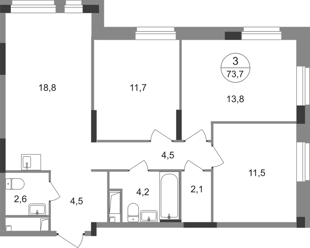 Продается трехкомнатная квартира без отделки в 9 фазе города-парка «Первый Московский». Общая площадь квартиры - 73,7 кв. м, этаж 12 из 19. Срок сдачи - 2 квартал 2027 года. Тип дома - монолитный. ТОЛЬКО ДО 28 ФЕВРАЛЯ: • Рассрочка до 13 месяцев с первоначальным взносом от 10% • Ежемесячный платеж от 50 000 руб. *подробную информацию по скидкам и акциям уточняйте в отделе продаж. Корпус состоит из 3 секций. Город-парк "Первый Московский" расположен всего в 7 км по Киевскому шоссе от МКАД на территории Новой Москвы. Из города-парка прямой выезд на Киевское шоссе и трассу Солнцево-Бутово-Варшавское шоссе. ТРАНСПОРТНАЯ ДОСТУПНОСТЬ: - 5 мин. на личном автомобиле или 10 мин. на автобусе №189, 147, 193 до станции метро «Филатов Луг» - 5 мин. на личном автомобиле или 12 мин. на автобусе №863 до станции метро «Саларьево» - 6 мин. на личном автомобиле или 15 мин. на автобусе №333 до станции метро «Рассказовка» РАЗВИТАЯ ИНФРАСТРУКТУРА В ОКРУЖЕНИИ: - общеобразовательная школа №2120 (корпуса д1, д7, ш1-ш5) - детский сад №2120 (корпуса д2, д9) - школа искусств - городская больница, детская поликлиника, филиал №5 - подстанция скорой помощи №58 и пожарно-спасательный центр №313 - отдел полиции, отдел ГИБДД - торговые центры «Столица» и «Новомосковский» - стадион, каток, бассейн - кафе, продуктовые магазины, аптеки, фитнес-центры, салоны красоты и пр. БЛАГОУСТРОЙСТВО: - дворы без машин - разнообразные детские площадки и развивающие комплексы - детские площадки разделены по возрастным группам - максимальная близость корпуса к парку «Филатов луг» - озеленение территории с учетом зонирования, островками для отдыха ОСОБЕННОСТИ АРХИТЕКТУРЫ: - безбарьерные входные группы - велопарковка на -1 этаже - колясочные в каждой входной группе - коммерческие помещения на 1 этаже в трех секциях - кладовые помещения расположены на жилых этажах и на -1 этаже - в каждой секции корпуса — 4 лифта: 2 пассажирских, 2 грузовых - видеонаблюдение установленное в холлах первых этажей, у подъездов и на прилегающей территории АВТОРСКИЙ ДИЗАЙН: Входные группы выполнены по авторскому дизайну, оснащены системой «тёплый пол». В каждой входной группе будет располагаться комфортабельная зона ожидания, почтовые ящики с ячейкой для спама, колясочная, акцентные пуфы и столик.О застройщике