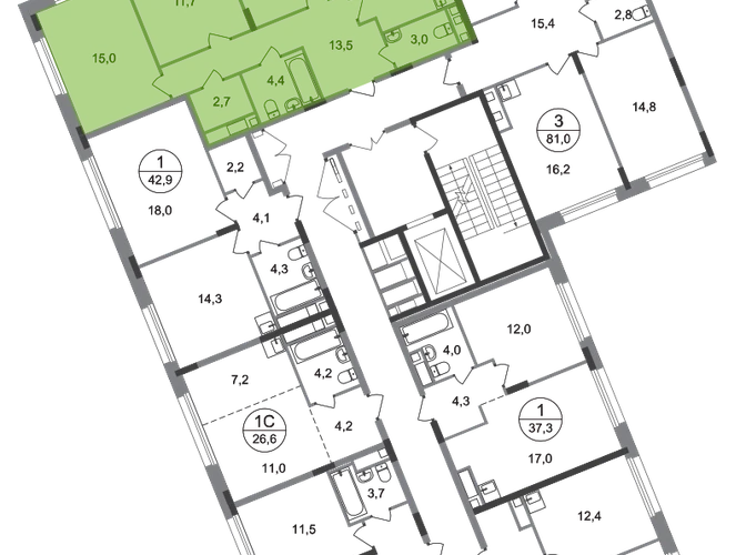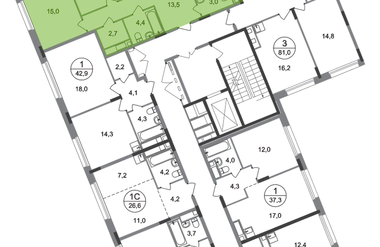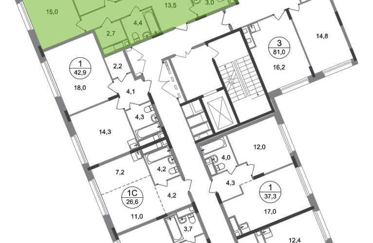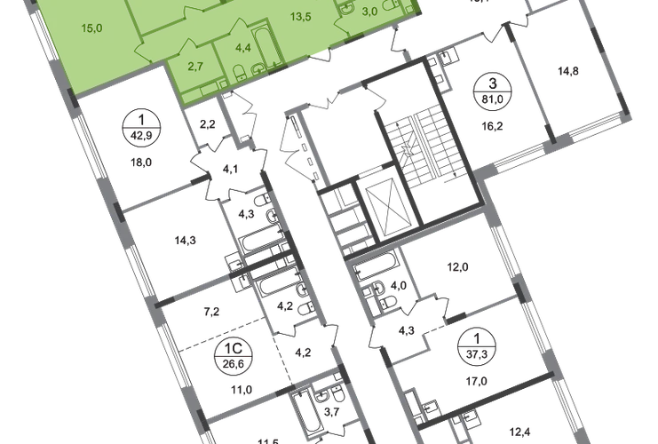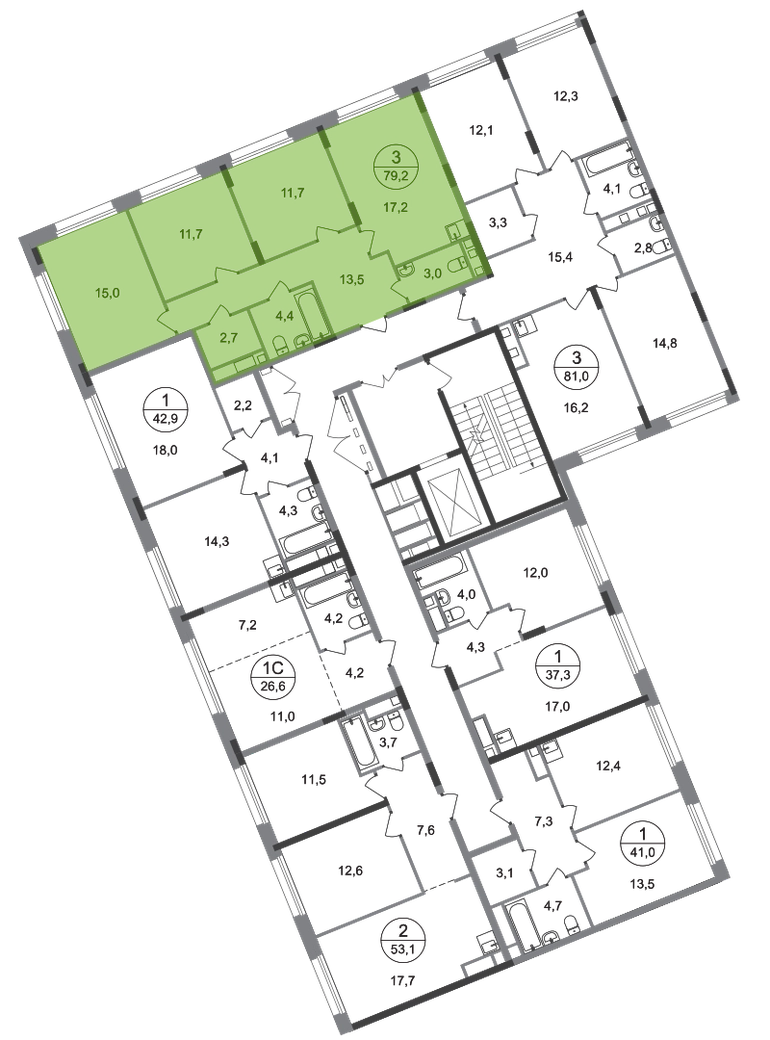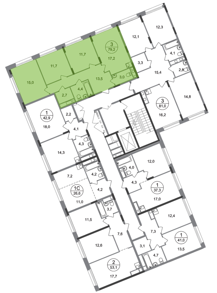 Продается трехкомнатная квартира с отделкой в 18 фазе города-парка "Переделкино Ближнее". Общая площадь квартиры - 79,2 кв. м, этаж 6 из 17. Срок сдачи - 2 квартал 2027 года. Тип дома - монолитный. ТОЛЬКО ДО 28 ФЕВРАЛЯ: - Рассрочка до 13 месяцев с первоначальным взносом от 10% - Ежемесячный платеж от 50 000 руб. *подробную информацию по скидкам и акциям уточняйте в отделе продаж. Корпус состоит из 12 секций c переменной этажностью 8-17 этажей. Город-парк "Переделкино Ближнее" расположен в 8 км от МКАД по Боровскому шоссе. ТРАНСПОРТНАЯ ДОСТУПНОСТЬ: - 10 минут пешком до МЦД-4 «Мичуринец» - 14 минут на машине до станции метро «Филатов Луг» Сокольнической линии - 15 минут пешком до станции метро «Рассказовка» Солнцевской линии - 30 минут до центра Москвы - Прямой выезд на дорогу Солнцево-Бутово-Варшавское шоссе, минуя жилую застройку всего ЖК РАЗВИТАЯ СОЦИАЛЬНАЯ ИНФРАСТРУКТУРА: - 7 детских садов, 3 школы - детская музыкальная школа имени Б.Л. Пастернака - поликлиника для взрослых ГБУЗ ГП № 212 ДЗМ филиал № 70 - пожарная часть №66. Аварийно-спасательный отряд № 6 ГКУ - банки, продуктовые магазины, аптеки, фитнес центры, салоны красоты и пр БЛАГОУСТРОЙСТВО: - дворы без машин - игровые зоны и развивающие детские площадки - детские площадки разделены по возрастным группам - зоны для пассивного отдыха - зоны для занятий спорта ОСОБЕННОСТИ АРХИТЕКТУРЫ: - переменная этажность открывает видовые характеристики на реку “Алешинка” и на лесопарковую зону - увеличенное остекление в квартирах - высокие потолки от 3,03 м. - безбарьерные входные группы - колясочные в каждой входной группе - кладовые помещения расположены на -1 этаже каждой секции и на 2-17 жилых этажах в секции №11 - коммерческие помещения на 1 этаже в 11 и 12 секциях - в секциях 2-4, 6-7, 11-12 по 2 лифта: 1 пассажирский, 1 грузовой - в секциях 1, 5, 8-10: 1 грузовой лифт - мусоропроводы в домах не предусмотрены, запроектированы специальные зона для сбора мусора - на фасаде предусмотрены корзины для установки кондиционеров. - видеонаблюдение установленное в холлах первых этажей, у подъездов и прилегающей территории АВТОРСКИЙ ДИЗАЙН: Входные группы выполнены по авторскому дизайну, оснащены системой «тёплый пол». В каждой входной группе будет располагаться комфортабельная зона ожидания, почтовые ящики, колясочная, акцентные пуфы и столик.О застройщике