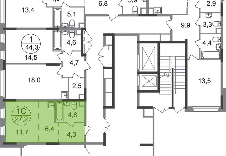 Продается квартира-студия в городе-парке "Переделкино Ближнее". Общая площадь квартиры - 27,2 кв. м, этаж 1 из 17. Срок сдачи - 3 квартал 2028 года. Тип дома - монолитный. Корпус расположен в 13 фазе строительства и состоит из 6 секций с переменной этажностью 12-17 этажей. Около 13 фазы запланировано строительство многоуровневого паркинга на 300 м/мест. 13 фаза имеет уникальное расположение и находится непосредственно на берегу Федосьинского пруда, который является сердцем города-парка «Переделкино Ближнее». Город-парк "Переделкино Ближнее" расположен в 8 км от МКАД по Боровскому шоссе. ТРАНСПОРТНАЯ ДОСТУПНОСТЬ: - 15 минут пешком до станции МЦД-4 «Мичуринец» - 25 минут пешком до станции метро «Рассказовка» Солнцевской линии - 30 минут до центра Москвы - 2026 г. - открытие трассы Солнцево-Бутово-Варшавское шоссе РАЗВИТАЯ СОЦИАЛЬНАЯ ИНФРАСТРУКТУРА: - 7 детских садов, 3 школы - банки, продуктовые магазины, аптеки, фитнес центры, салоны красоты и пр БЛАГОУСТРОЙСТВО: - дворы без машин - игровые зоны и развивающие детские площадки - зоны для созерцательного и медитативного отдыха - зоны для занятий спортом ОСОБЕННОСТИ АРХИТЕКТУРЫ: - высокие потолки от 3,03 м - безбарьерные входные группы - колясочные в каждой входной группе - кладовые помещения расположены на -1 этаже каждой секции - в каждой секции 2 лифта: 1 пассажирский, 1 грузовой - на фасаде предусмотрены корзины для установки кондиционеров АВТОРСКИЙ ДИЗАЙН: Входные группы выполнены по авторскому дизайну, благодаря панорамному остеклению наполнены естественным светом. В каждой входной группе будет располагаться комфортабельная зона ожидания с возможностью зарядить электронные устройства, почтовые ящики, колясочная, акцентные пуфы и столик.О застройщике
