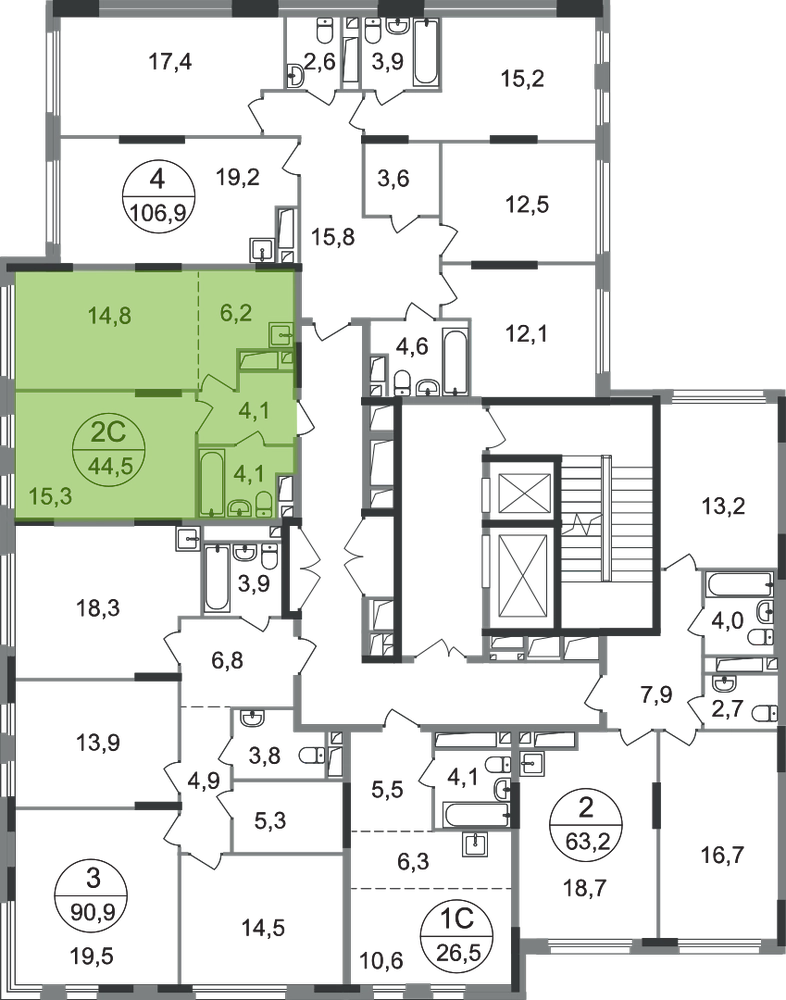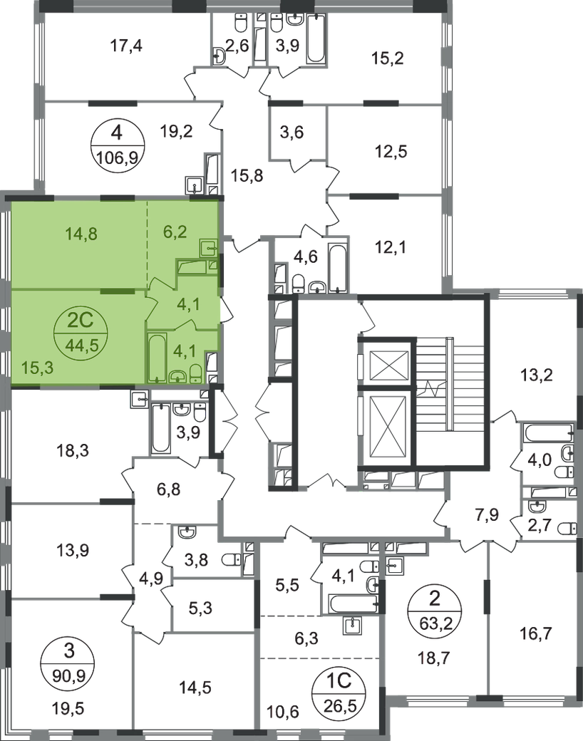 Продается двухкомнатная квартира в городе-парке "Переделкино Ближнее". Общая площадь квартиры - 44,5 кв. м, этаж 15 из 17. Срок сдачи - 3 квартал 2028 года. Тип дома - монолитный. Корпус расположен в 13 фазе строительства и состоит из 6 секций с переменной этажностью 12-17 этажей. Около 13 фазы запланировано строительство многоуровневого паркинга на 300 м/мест. 13 фаза имеет уникальное расположение и находится непосредственно на берегу Федосьинского пруда, который является сердцем города-парка «Переделкино Ближнее». Город-парк "Переделкино Ближнее" расположен в 8 км от МКАД по Боровскому шоссе. ТРАНСПОРТНАЯ ДОСТУПНОСТЬ: - 15 минут пешком до станции МЦД-4 «Мичуринец» - 25 минут пешком до станции метро «Рассказовка» Солнцевской линии - 30 минут до центра Москвы - 2026 г. - открытие трассы Солнцево-Бутово-Варшавское шоссе РАЗВИТАЯ СОЦИАЛЬНАЯ ИНФРАСТРУКТУРА: - 7 детских садов, 3 школы - банки, продуктовые магазины, аптеки, фитнес центры, салоны красоты и пр БЛАГОУСТРОЙСТВО: - дворы без машин - игровые зоны и развивающие детские площадки - зоны для созерцательного и медитативного отдыха - зоны для занятий спортом ОСОБЕННОСТИ АРХИТЕКТУРЫ: - высокие потолки от 3,03 м - безбарьерные входные группы - колясочные в каждой входной группе - кладовые помещения расположены на -1 этаже каждой секции - в каждой секции 2 лифта: 1 пассажирский, 1 грузовой - на фасаде предусмотрены корзины для установки кондиционеров АВТОРСКИЙ ДИЗАЙН: Входные группы выполнены по авторскому дизайну, благодаря панорамному остеклению наполнены естественным светом. В каждой входной группе будет располагаться комфортабельная зона ожидания с возможностью зарядить электронные устройства, почтовые ящики, колясочная, акцентные пуфы и столик.О застройщике