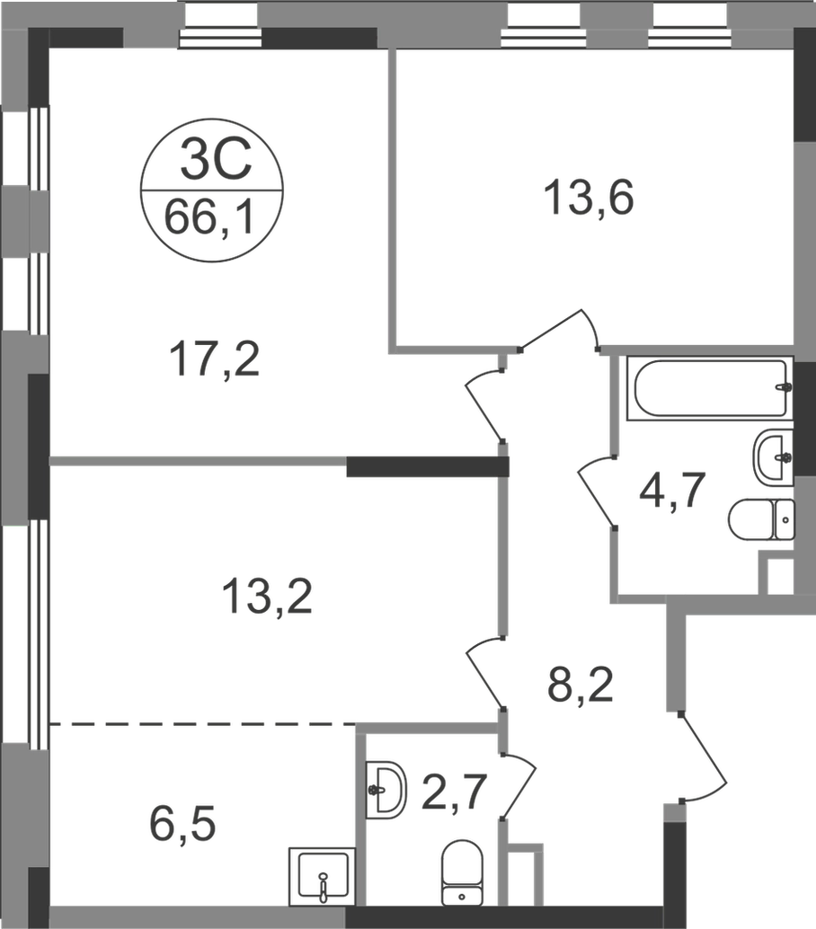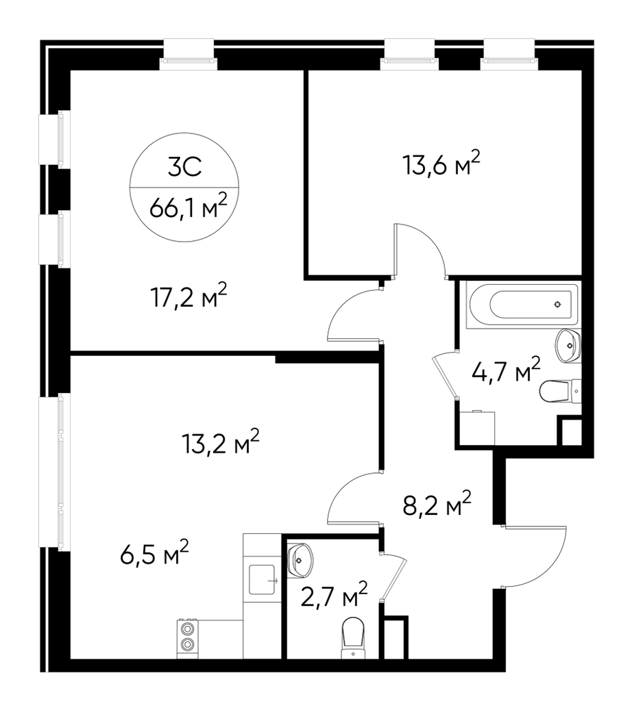 Продается трехкомнатная квартира в городе-парке "Переделкино Ближнее". Общая площадь квартиры - 66,1 кв. м, этаж 1 из 17. Срок сдачи - 1 квартал 2028 года. Тип дома - монолитный. Корпус расположен в 13 фазе строительства и состоит из 8 секций с переменной этажностью 12-17 этажей. Все секции без отделки. Около 13 фазы запланировано строительство многоуровневого паркинга на 300 м/мест. 13 фаза имеет уникальное расположение и находится непосредственно на берегу Федосьинского пруда, который является сердцем города-парка «Переделкино Ближнее». Город-парк "Переделкино Ближнее" расположен в 8 км от МКАД по Боровскому шоссе. ТРАНСПОРТНАЯ ДОСТУПНОСТЬ: - 15 минут пешком до станции МЦД-4 «Мичуринец» - 25 минут пешком до станции метро «Рассказовка» Солнцевской линии - 30 минут до центра Москвы - 2026 г. - открытие трассы Солнцево-Бутово-Варшавское шоссе РАЗВИТАЯ СОЦИАЛЬНАЯ ИНФРАСТРУКТУРА: - 7 детских садов, 3 школы - банки, продуктовые магазины, аптеки, фитнес центры, салоны красоты и пр БЛАГОУСТРОЙСТВО: - дворы без машин - игровые зоны и развивающие детские площадки - зоны для созерцательного и медитативного отдыха - зоны для занятий спортом ОСОБЕННОСТИ АРХИТЕКТУРЫ: - высокие потолки от 3,03 м - безбарьерные входные группы - колясочные в каждой входной группе - кладовые помещения расположены на -1 этаже каждой секции - в каждой секции 2 лифта: 1 пассажирский, 1 грузовой - на фасаде предусмотрены корзины для установки кондиционеров АВТОРСКИЙ ДИЗАЙН: Входные группы выполнены по авторскому дизайну, благодаря панорамному остеклению наполнены естественным светом. В каждой входной группе будет располагаться комфортабельная зона ожидания с возможностью зарядить электронные устройства, почтовые ящики, колясочная, акцентные пуфы и столик.О застройщике