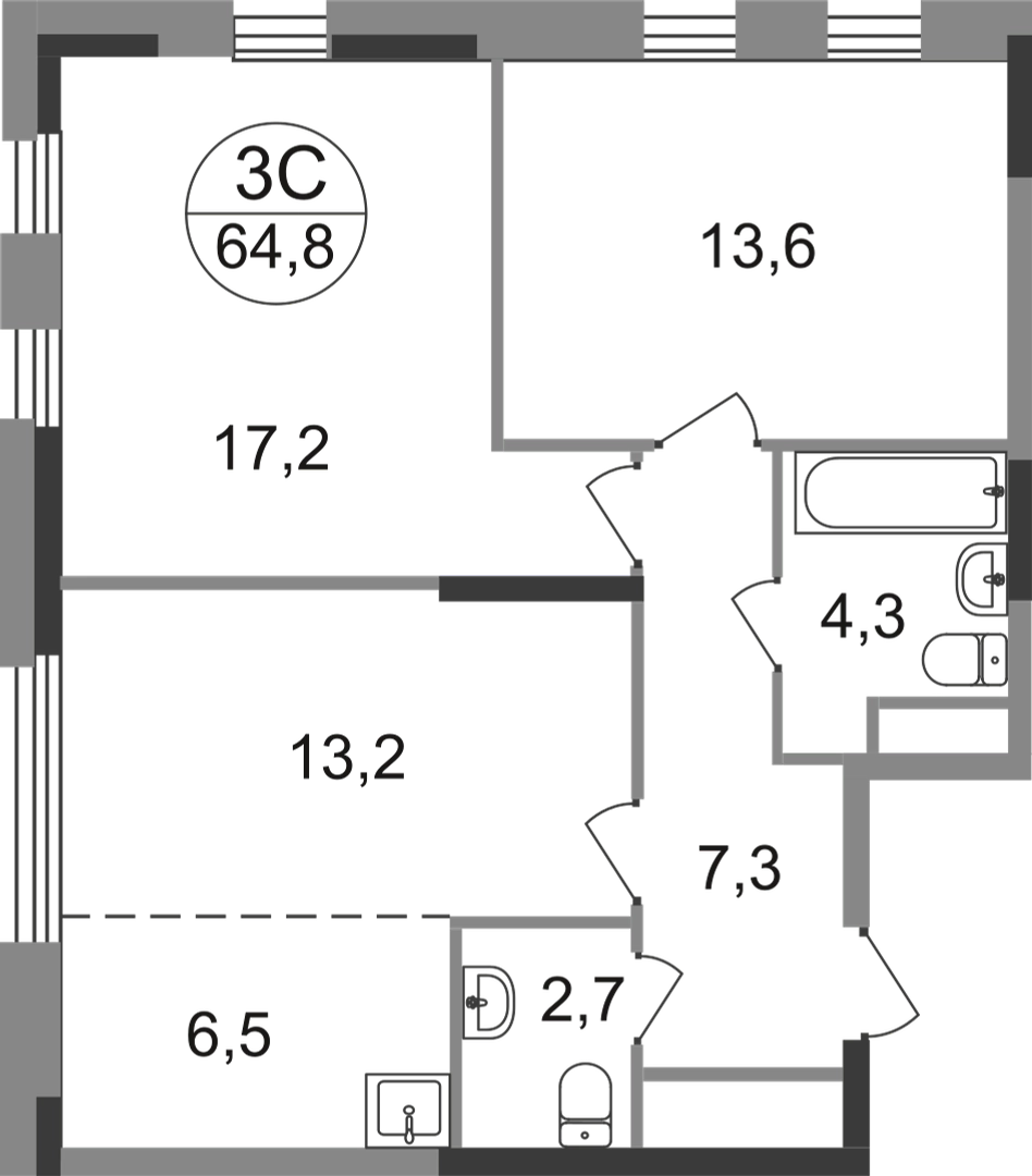 Продается трехкомнатная квартира в городе-парке "Переделкино Ближнее". Общая площадь квартиры - 64,8 кв. м, этаж 2 из 17. Срок сдачи - 1 квартал 2028 года. Тип дома - монолитный. Корпус расположен в 13 фазе строительства и состоит из 8 секций с переменной этажностью 12-17 этажей. Все секции без отделки. Около 13 фазы запланировано строительство многоуровневого паркинга на 300 м/мест. 13 фаза имеет уникальное расположение и находится непосредственно на берегу Федосьинского пруда, который является сердцем города-парка «Переделкино Ближнее». Город-парк "Переделкино Ближнее" расположен в 8 км от МКАД по Боровскому шоссе. ТРАНСПОРТНАЯ ДОСТУПНОСТЬ: - 15 минут пешком до станции МЦД-4 «Мичуринец» - 25 минут пешком до станции метро «Рассказовка» Солнцевской линии - 30 минут до центра Москвы - 2026 г. - открытие трассы Солнцево-Бутово-Варшавское шоссе РАЗВИТАЯ СОЦИАЛЬНАЯ ИНФРАСТРУКТУРА: - 7 детских садов, 3 школы - банки, продуктовые магазины, аптеки, фитнес центры, салоны красоты и пр БЛАГОУСТРОЙСТВО: - дворы без машин - игровые зоны и развивающие детские площадки - зоны для созерцательного и медитативного отдыха - зоны для занятий спортом ОСОБЕННОСТИ АРХИТЕКТУРЫ: - высокие потолки от 3,03 м - безбарьерные входные группы - колясочные в каждой входной группе - кладовые помещения расположены на -1 этаже каждой секции - в каждой секции 2 лифта: 1 пассажирский, 1 грузовой - на фасаде предусмотрены корзины для установки кондиционеров АВТОРСКИЙ ДИЗАЙН: Входные группы выполнены по авторскому дизайну, благодаря панорамному остеклению наполнены естественным светом. В каждой входной группе будет располагаться комфортабельная зона ожидания с возможностью зарядить электронные устройства, почтовые ящики, колясочная, акцентные пуфы и столик.О застройщике