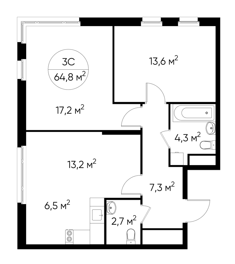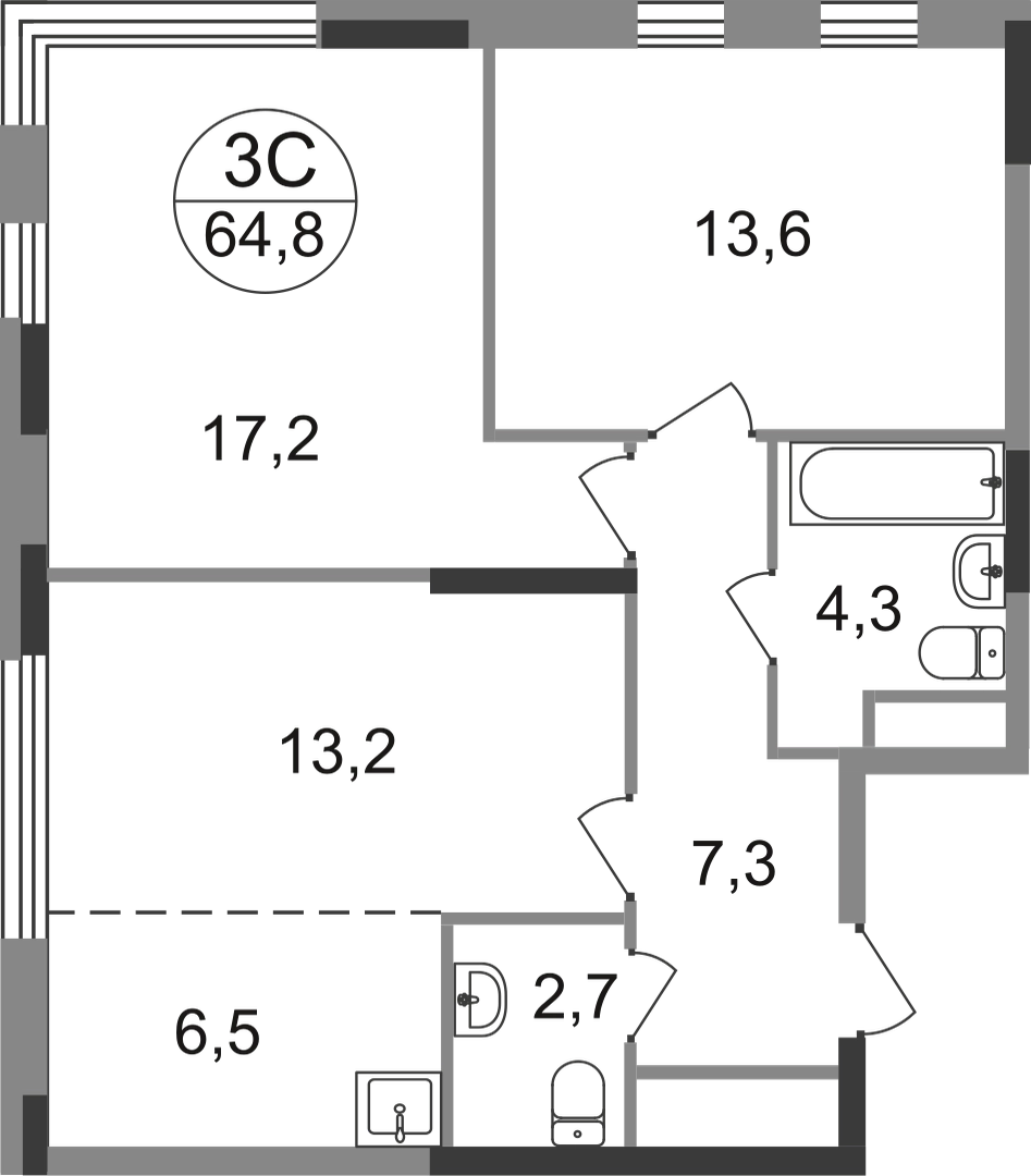 Продается трехкомнатная квартира в городе-парке "Переделкино Ближнее". Общая площадь квартиры - 64,8 кв. м, этаж 6 из 17. Срок сдачи - 1 квартал 2028 года. Тип дома - монолитный. Корпус расположен в 13 фазе строительства и состоит из 8 секций с переменной этажностью 12-17 этажей. Все секции без отделки. Около 13 фазы запланировано строительство многоуровневого паркинга на 300 м/мест. 13 фаза имеет уникальное расположение и находится непосредственно на берегу Федосьинского пруда, который является сердцем города-парка «Переделкино Ближнее». Город-парк "Переделкино Ближнее" расположен в 8 км от МКАД по Боровскому шоссе. ТРАНСПОРТНАЯ ДОСТУПНОСТЬ: - 15 минут пешком до станции МЦД-4 «Мичуринец» - 25 минут пешком до станции метро «Рассказовка» Солнцевской линии - 30 минут до центра Москвы - 2026 г. - открытие трассы Солнцево-Бутово-Варшавское шоссе РАЗВИТАЯ СОЦИАЛЬНАЯ ИНФРАСТРУКТУРА: - 7 детских садов, 3 школы - банки, продуктовые магазины, аптеки, фитнес центры, салоны красоты и пр БЛАГОУСТРОЙСТВО: - дворы без машин - игровые зоны и развивающие детские площадки - зоны для созерцательного и медитативного отдыха - зоны для занятий спортом ОСОБЕННОСТИ АРХИТЕКТУРЫ: - высокие потолки от 3,03 м - безбарьерные входные группы - колясочные в каждой входной группе - кладовые помещения расположены на -1 этаже каждой секции - в каждой секции 2 лифта: 1 пассажирский, 1 грузовой - на фасаде предусмотрены корзины для установки кондиционеров АВТОРСКИЙ ДИЗАЙН: Входные группы выполнены по авторскому дизайну, благодаря панорамному остеклению наполнены естественным светом. В каждой входной группе будет располагаться комфортабельная зона ожидания с возможностью зарядить электронные устройства, почтовые ящики, колясочная, акцентные пуфы и столик.О застройщике