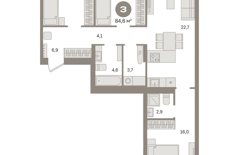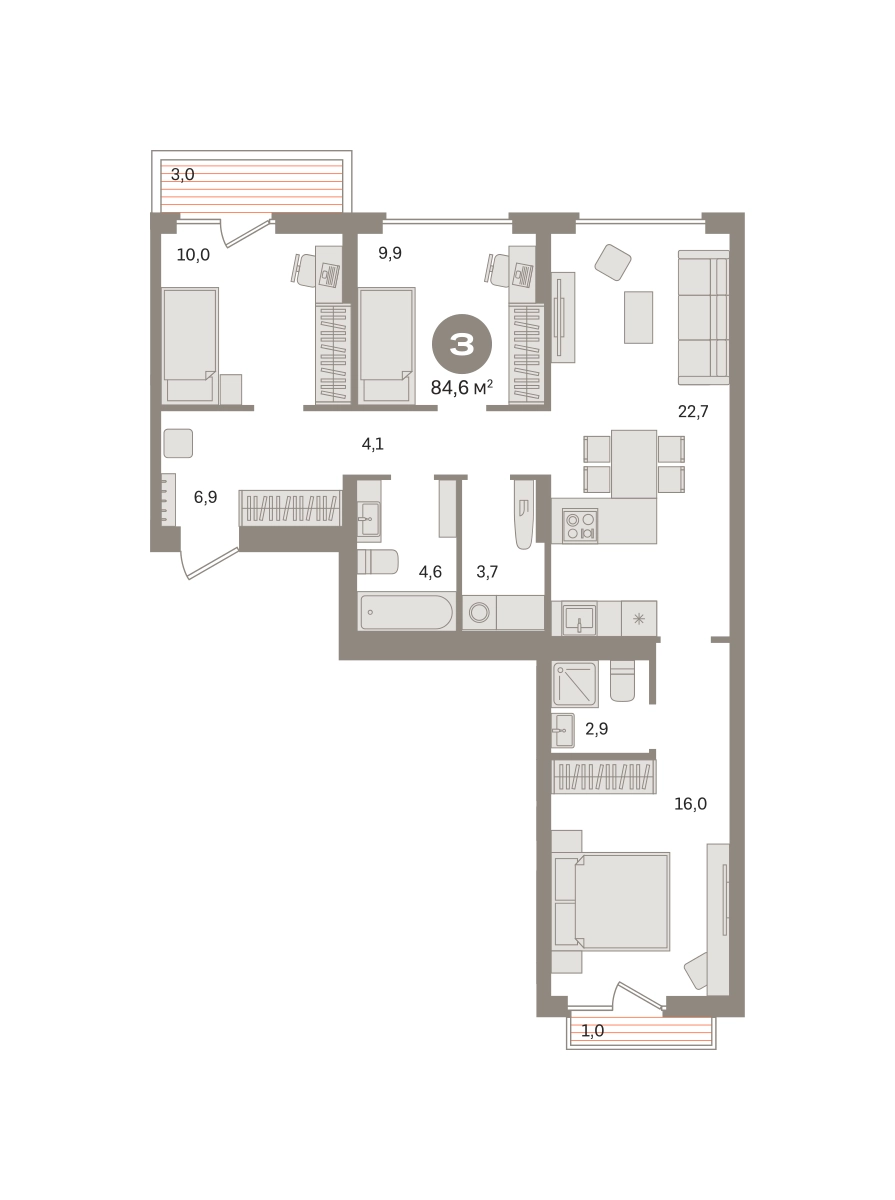 Квартира с кухней-гостиной и тремя спальнями в «Первом квартале». Особенности планировки: балкон, вид во двор, второй санузел, мастер-спальня, постирочная, предчистовая отделка, разнесённые спальни, французский балкон. № квартиры в нашей базе: МТК05-Ж3.2.1.О застройщике