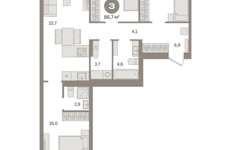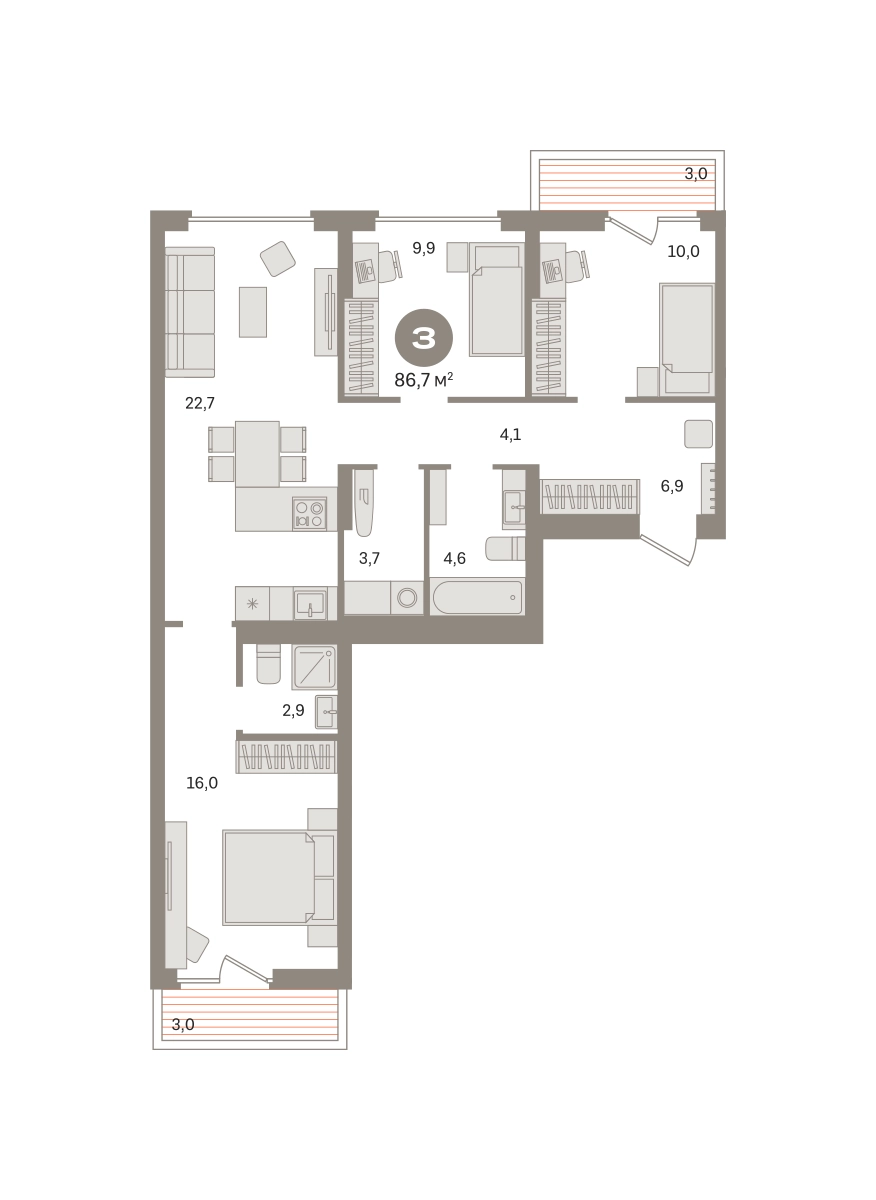 Продаётся с кладовой. Квартира с кухней-гостиной и тремя спальнями в «Первом квартале». Особенности планировки: балкон, вид во двор, гардеробная, мастер-спальня, окна на две стороны, постирочная, предчистовая отделка, разнесённые спальни. № квартиры в нашей базе: МТК05-Ж3.2.6.О застройщике