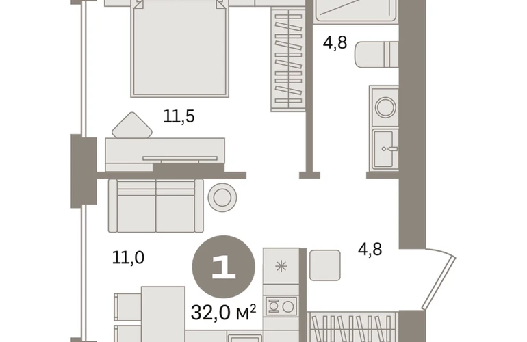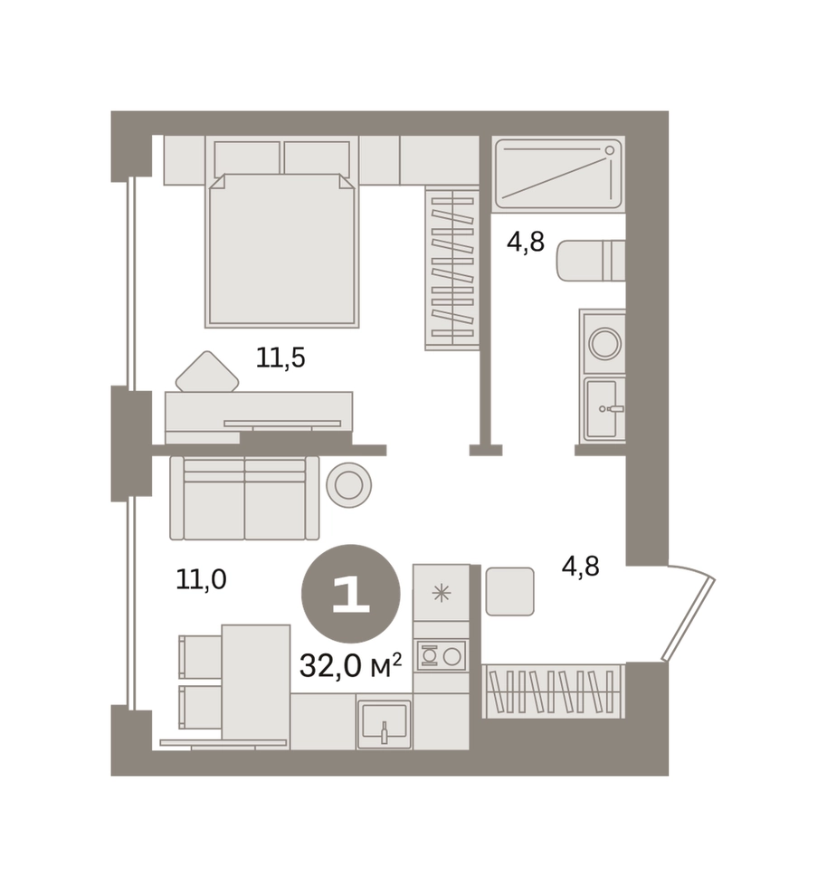 Квартира с кухней-гостиной и одной спальней в «Первом квартале». Особенности планировки: вид во двор, предчистовая отделка. № квартиры в нашей базе: МТК07-Ж1.4.9.О застройщике