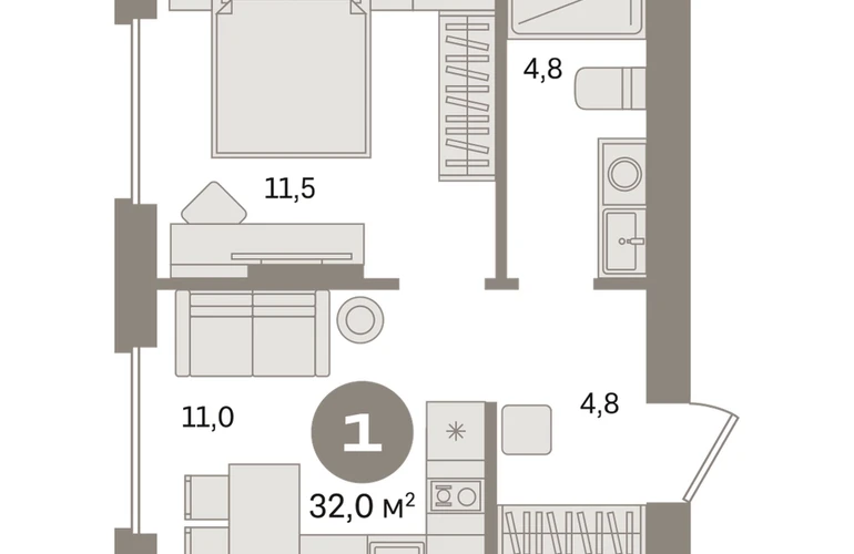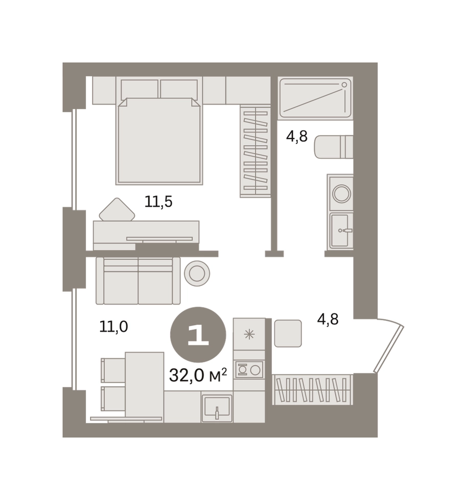 Квартира с кухней-гостиной и одной спальней в «Первом квартале». Особенности планировки: предчистовая отделка. № квартиры в нашей базе: МТК07-Ж1.15.7.О застройщике