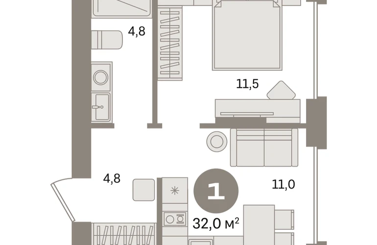 Квартира с кухней-гостиной и одной спальней в «Первом квартале». Особенности планировки: предчистовая отделка. № квартиры в нашей базе: МТК07-Ж1.14.3.О застройщике