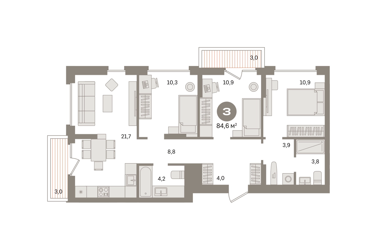 Квартира с кухней-гостиной и тремя спальнями в «Первом квартале». Особенности планировки: балкон, второй санузел, постирочная, предчистовая отделка, рабочий кабинет, разнесённые спальни. № квартиры в нашей базе: МТК02-Ж2.2.7.О застройщике