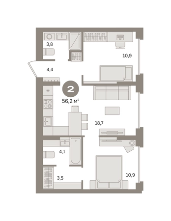 Квартира с кухней-гостиной и двумя спальнями в «Первом квартале». Особенности планировки: второй санузел, гардеробная, мастер-спальня, предчистовая отделка, разнесённые спальни. № квартиры в нашей базе: МТК01-Ж4.4.4.О застройщике