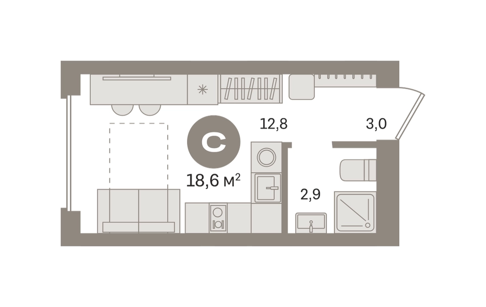 Студия в «Первом квартале». Особенности планировки: новые лоты, предчистовая отделка. № квартиры в нашей базе: МТК04-Ж2.3.4.О застройщике