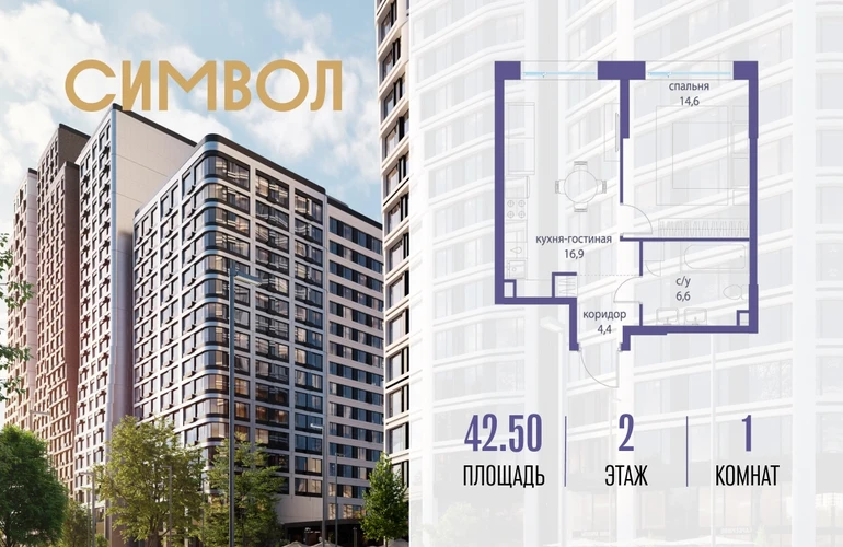 Продается 1-комнатная квартира от застройщика: общая площадь 42.50 м², жилая 14.60 м², кухня 16.90 м², 2-й этаж, жилой квартал «Гордость», корпус 36 (секция 4). Срок сдачи: 2 квартал 2029 года. Позвоните сейчас и забронируйте квартиру! Квартал бизнес-класса СИМВОЛ — это городское пространство нового поколения в историческом районе Лефортово, на границе ЦАО, в 2 км от Садового кольца. Бионическая архитектура СИМВОЛА превратила Лефортово в суперсовременное и модное пространство. Из окон, с балконов и террас просторных квартир СИМВОЛА открываются отличные виды на город и новый парк «Зеленая река», «протекающий» через все кварталы комплекса на 2 км. В квартале уже есть все, что нужно для комфортной жизни: кафе и рестораны, супермаркеты и магазины, медицинские и физкультурно-оздоровительные центры, салоны красоты и барбершопы, аптеки и оптики, химчистки, пункты доставки и другие сервисы — всего более 90 действующих объектов внутриквартальной инфраструктуры. Для юных жителей СИМВОЛА открыты детский сад и инженерный лицей при МГТУ им. Баумана. Особенности квартала: • Свой парк «Зеленая Река» - 10 га зелени и развлечений на любой вкус! • Уникальная для Москвы архитектура - Проект создан архитектурной мастерской ATRIUM по дизайн-коду британских бюро LDA Design и UHA London. • Богатая инфраструктура с детскими садами и лицеем им. Баумана, кафе и ресторанами, супермаркетами и аптеками, зоной для фитнеса, бассейном и мед. центром. • Квартиры с панорамными окнами, террасами, ванными с окнами и каминами редких форматов. • Закрытые безопасные зелёные дворы-парки без машин!О застройщике
