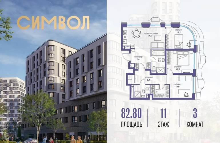 Продается 3-комнатная квартира от застройщика: общая площадь 82.80 м², жилая 40.60 м², кухня 17.30 м², 11-й этаж, жилой квартал «Вдохновение», корпус 34 (секция 1). Срок сдачи: 4 квартал 2027 года. Позвоните сейчас и забронируйте квартиру! Квартал бизнес-класса СИМВОЛ — это городское пространство нового поколения в историческом районе Лефортово, на границе ЦАО, в 2 км от Садового кольца. Бионическая архитектура СИМВОЛА превратила Лефортово в суперсовременное и модное пространство. Из окон, с балконов и террас просторных квартир СИМВОЛА открываются отличные виды на город и новый парк «Зеленая река», «протекающий» через все кварталы комплекса на 2 км. В квартале уже есть все, что нужно для комфортной жизни: кафе и рестораны, супермаркеты и магазины, медицинские и физкультурно-оздоровительные центры, салоны красоты и барбершопы, аптеки и оптики, химчистки, пункты доставки и другие сервисы — всего более 90 действующих объектов внутриквартальной инфраструктуры. Для юных жителей СИМВОЛА открыты детский сад и инженерный лицей при МГТУ им. Баумана. Особенности квартала: • Свой парк «Зеленая Река» - 10 га зелени и развлечений на любой вкус! • Уникальная для Москвы архитектура - Проект создан архитектурной мастерской ATRIUM по дизайн-коду британских бюро LDA Design и UHA London. • Богатая инфраструктура с детскими садами и лицеем им. Баумана, кафе и ресторанами, супермаркетами и аптеками, зоной для фитнеса, бассейном и мед. центром. • Квартиры с панорамными окнами, террасами, ванными с окнами и каминами редких форматов. • Закрытые безопасные зелёные дворы-парки без машин!О застройщике