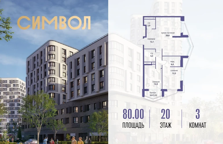 Продается 3-комнатная квартира от застройщика: общая площадь 80.00 м², жилая 24.70 м², кухня 28.80 м², 20-й этаж, жилой квартал «Вдохновение», корпус 32 (секция 1). Срок сдачи: 4 квартал 2027 года. Позвоните сейчас и забронируйте квартиру! Квартал бизнес-класса СИМВОЛ — это городское пространство нового поколения в историческом районе Лефортово, на границе ЦАО, в 2 км от Садового кольца. Бионическая архитектура СИМВОЛА превратила Лефортово в суперсовременное и модное пространство. Из окон, с балконов и террас просторных квартир СИМВОЛА открываются отличные виды на город и новый парк «Зеленая река», «протекающий» через все кварталы комплекса на 2 км. В квартале уже есть все, что нужно для комфортной жизни: кафе и рестораны, супермаркеты и магазины, медицинские и физкультурно-оздоровительные центры, салоны красоты и барбершопы, аптеки и оптики, химчистки, пункты доставки и другие сервисы — всего более 90 действующих объектов внутриквартальной инфраструктуры. Для юных жителей СИМВОЛА открыты детский сад и инженерный лицей при МГТУ им. Баумана. Особенности квартала: • Свой парк «Зеленая Река» - 10 га зелени и развлечений на любой вкус! • Уникальная для Москвы архитектура - Проект создан архитектурной мастерской ATRIUM по дизайн-коду британских бюро LDA Design и UHA London. • Богатая инфраструктура с детскими садами и лицеем им. Баумана, кафе и ресторанами, супермаркетами и аптеками, зоной для фитнеса, бассейном и мед. центром. • Квартиры с панорамными окнами, террасами, ванными с окнами и каминами редких форматов. • Закрытые безопасные зелёные дворы-парки без машин!О застройщике