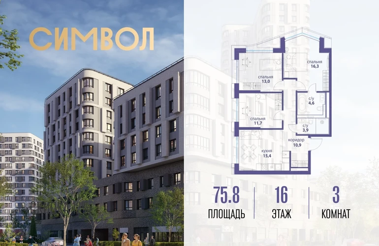 Продается 3-комнатная квартира от застройщика: общая площадь 75.80 м², жилая 41.00 м², кухня 15.40 м², 16-й этаж, жилой квартал «Вдохновение», корпус 33 (секция 3). Срок сдачи: 4 квартал 2027 года. Позвоните сейчас и забронируйте квартиру! Квартал бизнес-класса СИМВОЛ — это городское пространство нового поколения в историческом районе Лефортово, на границе ЦАО, в 2 км от Садового кольца. Бионическая архитектура СИМВОЛА превратила Лефортово в суперсовременное и модное пространство. Из окон, с балконов и террас просторных квартир СИМВОЛА открываются отличные виды на город и новый парк «Зеленая река», «протекающий» через все кварталы комплекса на 2 км. В квартале уже есть все, что нужно для комфортной жизни: кафе и рестораны, супермаркеты и магазины, медицинские и физкультурно-оздоровительные центры, салоны красоты и барбершопы, аптеки и оптики, химчистки, пункты доставки и другие сервисы — всего более 90 действующих объектов внутриквартальной инфраструктуры. Для юных жителей СИМВОЛА открыты детский сад и инженерный лицей при МГТУ им. Баумана. Особенности квартала: • Свой парк «Зеленая Река» - 10 га зелени и развлечений на любой вкус! • Уникальная для Москвы архитектура - Проект создан архитектурной мастерской ATRIUM по дизайн-коду британских бюро LDA Design и UHA London. • Богатая инфраструктура с детскими садами и лицеем им. Баумана, кафе и ресторанами, супермаркетами и аптеками, зоной для фитнеса, бассейном и мед. центром. • Квартиры с панорамными окнами, террасами, ванными с окнами и каминами редких форматов. • Закрытые безопасные зелёные дворы-парки без машин!О застройщике