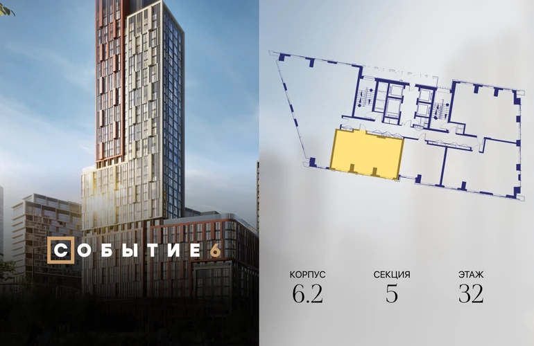 Продаётся 2-комнатная квартира от застройщика: общая площадь 61.80 м², жилая 32.90 м², кухня 17.80 м², 32-й этаж, жилой квартал «Событие-6», корпус 2 (секция 5) Срок сдачи: 1 квартал 2029 года. Позвоните сейчас и забронируйте квартиру! Продуманный до деталей. Созданный для жизни, полной счастливых событий. Парк-квартал СОБЫТИЕ — это жизнь класса премиум в престижном районе на Мосфильмовской улице. Архитектура мирового уровня. Выигрышное расположение на границе природного комплекса «Долина реки Раменки». Все для комфортной жизни и досуга: от детсадов и школ до ресторанов и медцентров. И новая точка притяжения — уже готовый парк «Событие» с пространствами активности для всех возрастов и интересов. Особенности квартала: • «Парящие» мосты и парк под облаками - уникальный дом с самыми завораживающими видами из окон «в пол» • Собственный парк — сразу за порогом! • Архитектурная концепция от известных международных бюро LDA Design и UHA London • Инфраструктура «тапочной доступности»: в кафе, школу, магазин — за пару минут! • Внутренний двор — настоящее продолжение вашего дома: закрытая охраняемая территория без машин, развивающие детские площадки, воркауты-зоны для тех, кто хочет быть в форме, площади для праздников и посиделок с соседями.О застройщике