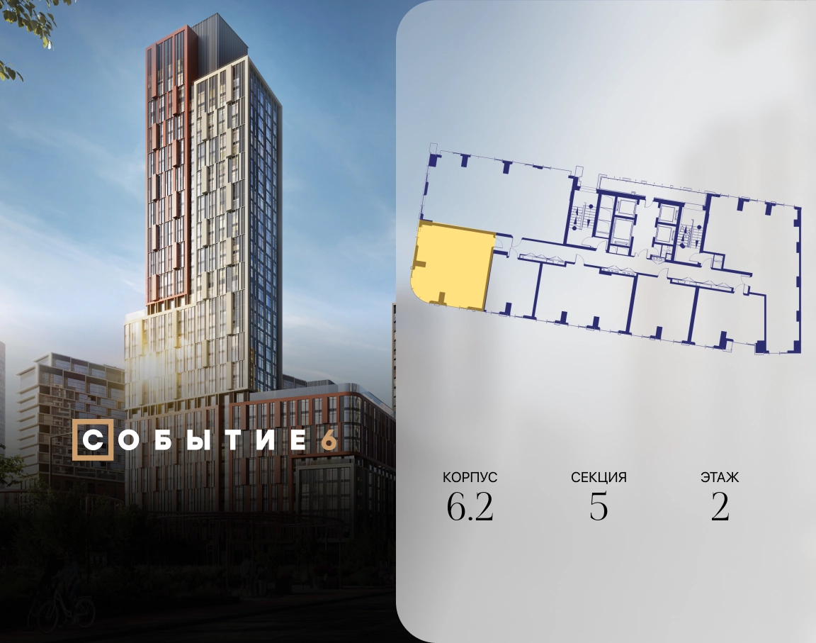 Продаётся 2-комнатная квартира от застройщика: общая площадь 64.80 м², жилая 26.20 м², кухня 21.00 м², 2-й этаж, жилой квартал «Событие-6», корпус 2 (секция 5) Срок сдачи: 1 квартал 2029 года. Позвоните сейчас и забронируйте квартиру! Продуманный до деталей. Созданный для жизни, полной счастливых событий. Парк-квартал СОБЫТИЕ — это жизнь класса премиум в престижном районе на Мосфильмовской улице. Архитектура мирового уровня. Выигрышное расположение на границе природного комплекса «Долина реки Раменки». Все для комфортной жизни и досуга: от детсадов и школ до ресторанов и медцентров. И новая точка притяжения — уже готовый парк «Событие» с пространствами активности для всех возрастов и интересов. Особенности квартала: • «Парящие» мосты и парк под облаками - уникальный дом с самыми завораживающими видами из окон «в пол» • Собственный парк — сразу за порогом! • Архитектурная концепция от известных международных бюро LDA Design и UHA London • Инфраструктура «тапочной доступности»: в кафе, школу, магазин — за пару минут! • Внутренний двор — настоящее продолжение вашего дома: закрытая охраняемая территория без машин, развивающие детские площадки, воркауты-зоны для тех, кто хочет быть в форме, площади для праздников и посиделок с соседями.О застройщике