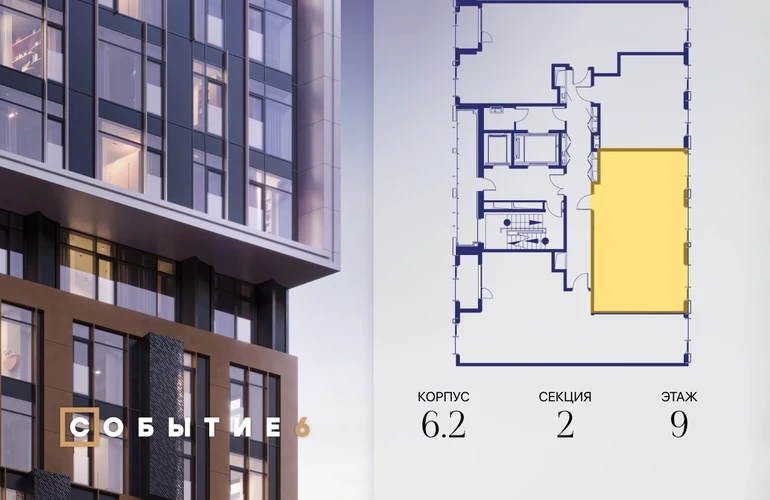 Продаётся 2-комнатная квартира от застройщика: общая площадь 62.30 м², жилая 28.80 м², кухня 22.10 м², 9-й этаж, жилой квартал «Событие-6», корпус 2 (секция 2) Срок сдачи: 4 квартал 2029 года. Позвоните сейчас и забронируйте квартиру! Продуманный до деталей. Созданный для жизни, полной счастливых событий. Парк-квартал СОБЫТИЕ — это жизнь класса премиум в престижном районе на Мосфильмовской улице. Архитектура мирового уровня. Выигрышное расположение на границе природного комплекса «Долина реки Раменки». Все для комфортной жизни и досуга: от детсадов и школ до ресторанов и медцентров. И новая точка притяжения — уже готовый парк «Событие» с пространствами активности для всех возрастов и интересов. Особенности квартала: • «Парящие» мосты и парк под облаками - уникальный дом с самыми завораживающими видами из окон «в пол» • Собственный парк — сразу за порогом! • Архитектурная концепция от известных международных бюро LDA Design и UHA London • Инфраструктура «тапочной доступности»: в кафе, школу, магазин — за пару минут! • Внутренний двор — настоящее продолжение вашего дома: закрытая охраняемая территория без машин, развивающие детские площадки, воркауты-зоны для тех, кто хочет быть в форме, площади для праздников и посиделок с соседями.О застройщике