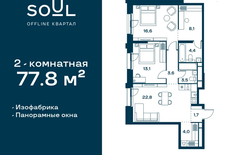 Цены указаны с условием 100% оплаты и стандартной ипотеки. Прямая продажа от застройщика! Продается 2-к. квартира номер 250 общей площадью 77.8 кв.м. на 21-м этаже 21 этажного дома, Корпус 1. С отделкой White Box Max. Проект бизнес-класса SOUL от девелопера FORMA. До метро Сокол 10 мин пешком. Архитектура от британского бюро SimpsonHaugh. Благоустройство дворов — Gillespies и GAFA. Территория состоит из культурного парка и приватных дворов. Озеленение в эстетике лесного оазиса. Насыщенное благоустройство: прогулочные тропинки, релакс-зоны, пряный и сенсорный сады, развивающие детские площадки и воркауты. В центре проекта объект культурного наследия — общественное пространство Изофабрика, построенная в 30-х годах по проекту архитектора Георгия Гольца. Здесь будут располагаться мастерские для взрослых и детей, выставочные залы, коворкинги, образовательный центр, рестораны и кафе. Квартиры с панорамными окнами, мастер-спальнями, гардеробными, классическими балконами и лоджиями, видовыми террасами. Высота потолков от 2,9 до 3,5 м. В проекте 2 детских сада на 100 и 200 малышей. Клубная гостиная, фитнес-рум, детская игровая комната, дизайнерские лобби, подземный паркинг и келлеры.О застройщике