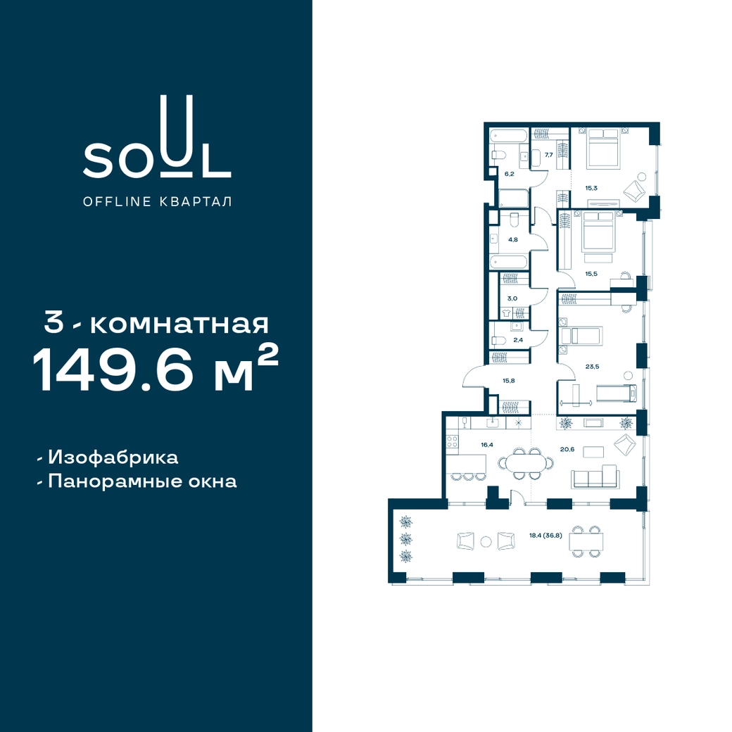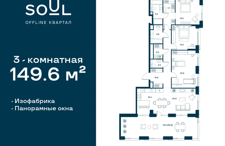 Цены указаны с условием 100% оплаты и стандартной ипотеки. Прямая продажа от застройщика! Продается 3-к. квартира номер 203 общей площадью 149.6 кв.м. на 25-м этаже 25 этажного дома, Корпус 3. С отделкой White Box Max. Проект бизнес-класса SOUL от девелопера FORMA. До метро Сокол 10 мин пешком. Архитектура от британского бюро SimpsonHaugh. Благоустройство дворов — Gillespies и GAFA. Территория состоит из культурного парка и приватных дворов. Озеленение в эстетике лесного оазиса. Насыщенное благоустройство: прогулочные тропинки, релакс-зоны, пряный и сенсорный сады, развивающие детские площадки и воркауты. В центре проекта объект культурного наследия — общественное пространство Изофабрика, построенная в 30-х годах по проекту архитектора Георгия Гольца. Здесь будут располагаться мастерские для взрослых и детей, выставочные залы, коворкинги, образовательный центр, рестораны и кафе. Квартиры с панорамными окнами, мастер-спальнями, гардеробными, классическими балконами и лоджиями, видовыми террасами. Высота потолков от 2,9 до 3,5 м. В проекте 2 детских сада на 100 и 200 малышей. Клубная гостиная, фитнес-рум, детская игровая комната, дизайнерские лобби, подземный паркинг и келлеры.О застройщике