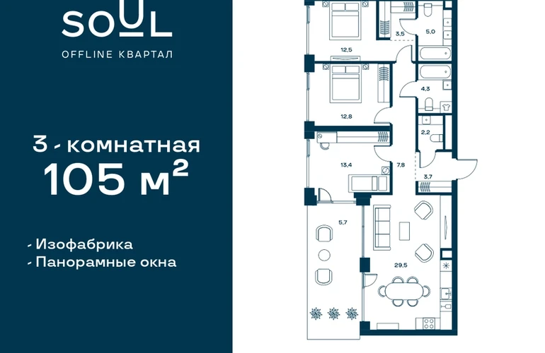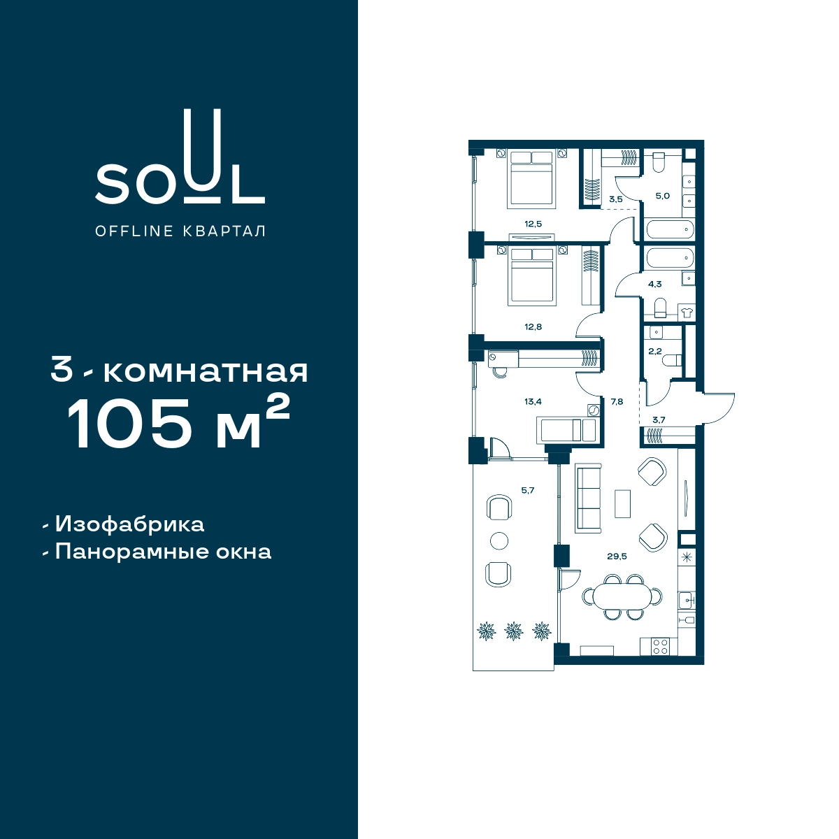 Цены указаны с условием 100% оплаты и стандартной ипотеки. Прямая продажа от застройщика! Продается 3-к. квартира номер 692 общей площадью 105 кв.м. на 24-м этаже 29 этажного дома, Корпус 5. Без отделки. Проект бизнес-класса SOUL от девелопера FORMA. До метро Сокол 10 мин пешком. Архитектура от британского бюро SimpsonHaugh. Благоустройство дворов — Gillespies и GAFA. Территория состоит из культурного парка и приватных дворов. Озеленение в эстетике лесного оазиса. Насыщенное благоустройство: прогулочные тропинки, релакс-зоны, пряный и сенсорный сады, развивающие детские площадки и воркауты. В центре проекта объект культурного наследия — общественное пространство Изофабрика, построенная в 30-х годах по проекту архитектора Георгия Гольца. Здесь будут располагаться мастерские для взрослых и детей, выставочные залы, коворкинги, образовательный центр, рестораны и кафе. Квартиры с панорамными окнами, мастер-спальнями, гардеробными, классическими балконами и лоджиями, видовыми террасами. Высота потолков от 2,9 до 3,5 м. В проекте 2 детских сада на 100 и 200 малышей. Клубная гостиная, фитнес-рум, детская игровая комната, дизайнерские лобби, подземный паркинг и келлеры.О застройщике