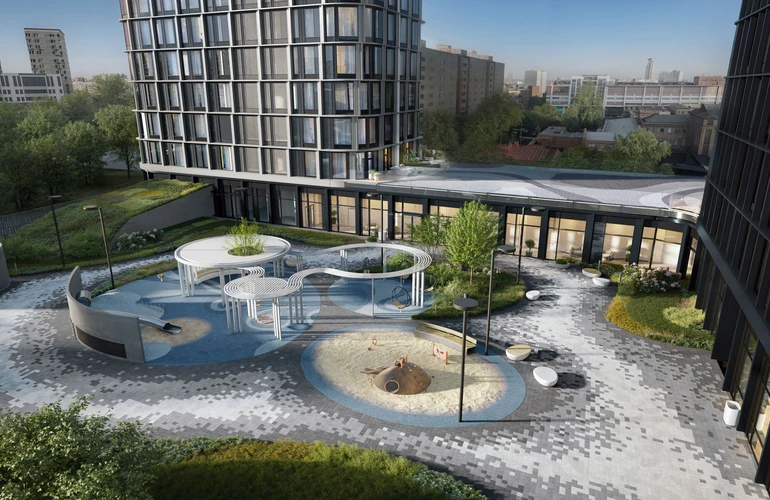Инфраструктура Премиум-квартала Дом 56 отвечает всем требованиям современного города. Поблизости находятся школы, детские сады, поликлиники, рестораны, кафе и фитнес-центры. Недалеко расположены парки и зеленые зоны для прогулок, а также торговые галереи и культурные пространства. Территория комплекса благоустроена: здесь предусмотрены прогулочные дорожки, зоны отдыха и детские площадки. Всё создано для комфортной жизни в центре Москвы без потери уюта и приватности.