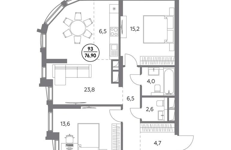 В премиум-квартале «Дом 56» на Бауманской напрямую от девелопера ГК «Галс-Девелопмент» представлена 2-комнатная квартира на 20 этаже общей площадью 76.90 м². Квартира предлагается без отделки, со свободной планировкой. Пространство позволяет воплотить дизайн - проект в соответствии с Вашими предпочтениями. «Дом 56» — расположен в Басманном районе на ул. Фридриха Энгельса, всего в 12-15 минутах пешком от станций метро «Бауманская» и «Электрозаводская». Рядом с премиум-кварталом находятся важные городские магистрали — ТТК, набережная реки Яузы и Бакунинская улица, переходящая в Спартаковскую и Маросейку. Архитектурный стиль «Дома 56» — параметрический минимализм. Футуристические фасады квартала с «эффектом закручивания» словно вращаются вокруг своей оси. Динамичный образ башен дополняет эффектное остекление — окна в пол будут в каждой квартире. «Дом 56» станет органичным продолжением современной научно-креативной среды Басманного района: — Развитое окружение — десятки различных точек притяжения; — Близость престижных вузов: МГТУ, МЭИ и Британская высшая школа дизайна; — Соседство с Технологической долиной и всем необходимым для запуска стартапа; — Набережные и парки для спорта и отдыха. «Дом 56» оснащён первоклассными инженерными системами. Входы на территорию, в здание и паркинг оборудованы системой контроля и управления доступом. С любого этажа в лобби и паркинг спускаются быстрые и бесшумные лифты премиального бренда. Во внутреннем приватном дворе будет создано пространство в бионическом стиле с лаунж-зонами, подвесными качелями, детскими плейхабами для разных возрастов, площадками для спорта и отдыха в окружении зелени. На двух подземных уровнях предусмотрен подземный паркинг и кладовые помещения.О застройщике