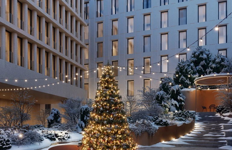 Современный дом бизнес-класса расположен в историческом центре Москвы по адресу улица Рождественка, 8с1. Здание выполнено в стиле, сочетающем современные архитектурные решения и классическую эстетику московских доходных домов. Фасады отделаны натуральным камнем, а большие окна обеспечивают отличную инсоляцию и вид на старую Москву. В комплексе предусмотрено ограниченное количество квартир, что создаёт атмосферу приватности и уюта. Продуманные планировки позволяют рационально использовать пространство, а инженерные системы соответствуют высоким стандартам комфорта. Внутренняя территория благоустроена: здесь размещены озеленённые зоны и места для отдыха жителей.