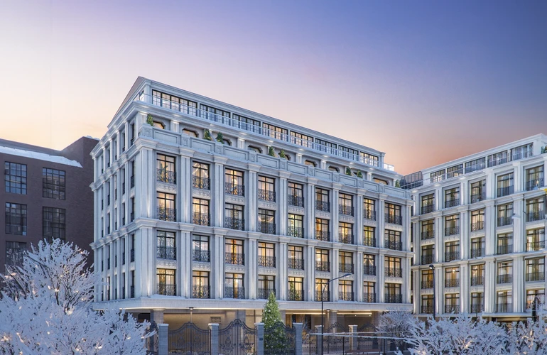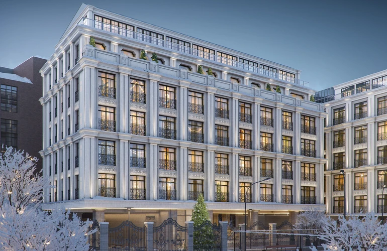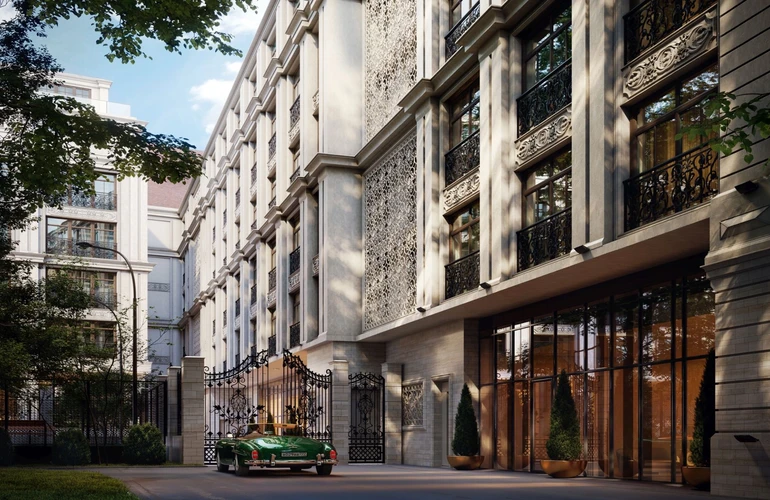 Пространство двора будет закрыто ажурной кованой оградой, вечерняя подсветка дома в обрамлении зелени дополнит атмосферу уюта и камерности. Отличительная особенность проекта — приватное патио с тенелюбивыми растениями и арт-объектами. В лобби есть лаунж-зона с камином и мягкими креслами, а также отдельная зона для собственных мероприятий резидентов — деловых или личных. Здесь удобно провести переговоры, организовать фуршет или коктейльный вечер.