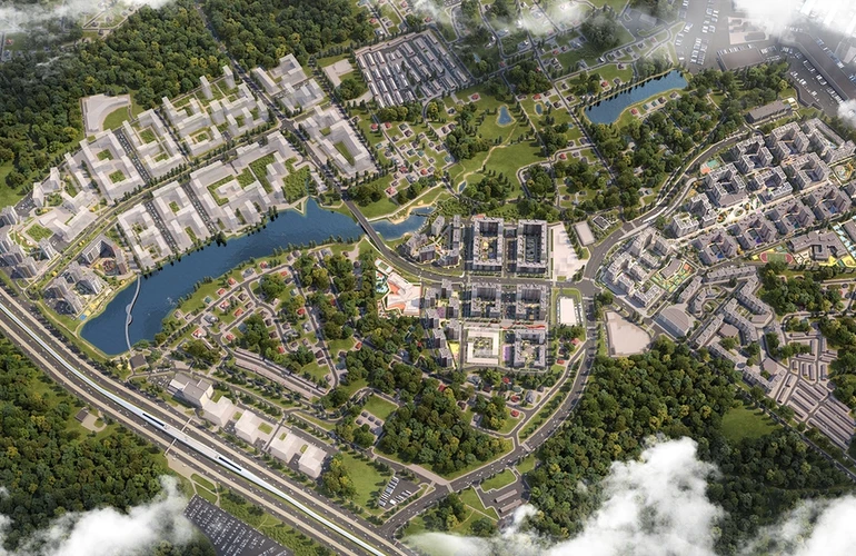 Спланировано несколько многоуровневых паркингов, гостевая парковка. В подъездах есть комнаты для консьержей, оборудованы колясочные. На территории построены школы и детские сады, поликлиника. Дворы закрыты от машин, в них расположены детские городки и спортивные ждя воркаута, футбольное поле, баскетбольная площадка. Есть пешеходный бульвар, спортивный центр с бассейном. Есть офисы, на территории откроются рестораны, супермаркеты, магазины, они будут располагаться на первых этажах домов.