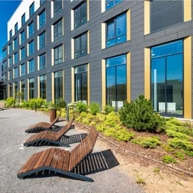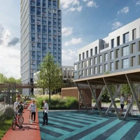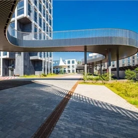Более 75 % территории отдано зелёным зонам с променадом, аллеями и веломаршрутами. В закрытом дворе обустроены беговые дорожки, спортивные и детские площадки, арт-инсталляции и зоны для барбекю. На стилобате располагаются подземный паркинг, кладовые помещения и авторский детский сад VERY KIDS с инновационной образовательной программой.