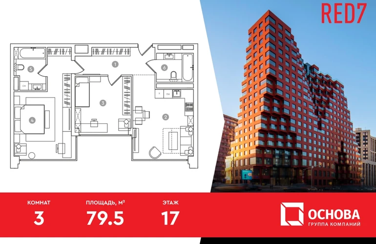 «RED7» — комплекс премиум-класса в самом сердце исторической Москвы, где каждая деталь продумана до мелочей. Продаются светлые 3-комнатные апартаменты площадью 79.50 кв. м, на 17 этаже престижного комплекса RED7, расположенного в самом центре Москвы, на первой линии Садового кольца. До Кремля всего 2,4 км. В шаговой доступности метро «Красные Ворота», Чистые пруды, уютные парки, театры, рестораны и все городские удобства. Расположение RED7 расположен в историческом центре Москвы, всего в 2,4 км от Кремля. Это новая достопримечательность, дополняющая облик города и ансамбль иконических зданий Садового кольца. Рядом с RED7 находятся бизнес-центры и офисы крупных компаний, штаб-квартиры банков, посольства и, безусловно, лучшие рестораны, магазины и места культурного досуга. Архитектура проекта Архитектурная концепция RED7 разработана всемирно известным голландским бюро MVRDV, с 1991 года создавшее множество выдающихся образцов прогрессивной архитектуры в Нидерландах, Франции, Дании, Испании, США, Японии, Китае и — впервые — в России, шаг за шагом пришло к форме RED7 как ответу русскому авангарду и сталинской архитектуре из далекого будущего. Этот дом не просто выдающееся архитектурное событие, он задает тон и формирует архитектурную ДНК Москвы будущего. Инфраструктура проекта RED7 — не просто апартаменты, это шаг в будущее жилых и общественных пространств. В комплексе будет создана «небесная гостиная» — клубное пространство для жителей со спортивной зоной, кинотеатром, коворкингом и местами для отдыха. Инфраструктура RED7 с открытым доступом включает премиальный фитнес-центр площадью 3,5 тысячи кв. м с полноразмерным бассейном длинной в 25м от, два ресторана от известных рестораторов, кафе, супермаркет премиального уровня, магазины и сопутствующие сервисы. Жители RED7 получают доступ ко всему набору сервисов дома, а общественные зоны дома создают идеальную атмосферу для общения, работы, развития и наслаждения жизнью. Технологии и материалы В апартаментах установлены полноразмерные панорамные окна в пол с шумоизоляцией от бельгийской компании Reynaers высотой до 4,5 метров. Особое внимание в RED7 уделяется микроклимату внутри дома: система вентиляции, очистки и кондиционирования воздуха в каждом апартаменте управляются удаленно через приложение iRED. В RED7 установлена система видеонаблюдения по всему комплексу, технология распознавания лиц и удаленный контроль охранных систем апартаментов. Паркинг Просторный 4-х уровневый паркинг расположен на подземных этажах. Количество машиномест — 284. Также предусмотрены кладовые, которые позволят освободить апартаменты от сезонных или редко используемых вещей Звоните и получите подробную консультацию, специалисты отдела продаж помогут выбрать наиболее подходящий вариант! Дистанционное оформление ипотеки, рассрочка и другие варианты покупки для вашего удобства.О застройщике