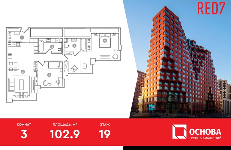 «RED7» — комплекс премиум-класса в самом сердце исторической Москвы, где каждая деталь продумана до мелочей. Продаются светлые 3-комнатные апартаменты площадью 102.90 кв. м, на 19 этаже престижного комплекса RED7, расположенного в самом центре Москвы, на первой линии Садового кольца. До Кремля всего 2,4 км. В шаговой доступности метро «Красные Ворота», Чистые пруды, уютные парки, театры, рестораны и все городские удобства. Расположение RED7 расположен в историческом центре Москвы, всего в 2,4 км от Кремля. Это новая достопримечательность, дополняющая облик города и ансамбль иконических зданий Садового кольца. Рядом с RED7 находятся бизнес-центры и офисы крупных компаний, штаб-квартиры банков, посольства и, безусловно, лучшие рестораны, магазины и места культурного досуга. Архитектура проекта Архитектурная концепция RED7 разработана всемирно известным голландским бюро MVRDV, с 1991 года создавшее множество выдающихся образцов прогрессивной архитектуры в Нидерландах, Франции, Дании, Испании, США, Японии, Китае и — впервые — в России, шаг за шагом пришло к форме RED7 как ответу русскому авангарду и сталинской архитектуре из далекого будущего. Этот дом не просто выдающееся архитектурное событие, он задает тон и формирует архитектурную ДНК Москвы будущего. Инфраструктура проекта RED7 — не просто апартаменты, это шаг в будущее жилых и общественных пространств. В комплексе будет создана «небесная гостиная» — клубное пространство для жителей со спортивной зоной, кинотеатром, коворкингом и местами для отдыха. Инфраструктура RED7 с открытым доступом включает премиальный фитнес-центр площадью 3,5 тысячи кв. м с полноразмерным бассейном длинной в 25м от, два ресторана от известных рестораторов, кафе, супермаркет премиального уровня, магазины и сопутствующие сервисы. Жители RED7 получают доступ ко всему набору сервисов дома, а общественные зоны дома создают идеальную атмосферу для общения, работы, развития и наслаждения жизнью. Технологии и материалы В апартаментах установлены полноразмерные панорамные окна в пол с шумоизоляцией от бельгийской компании Reynaers высотой до 4,5 метров. Особое внимание в RED7 уделяется микроклимату внутри дома: система вентиляции, очистки и кондиционирования воздуха в каждом апартаменте управляются удаленно через приложение iRED. В RED7 установлена система видеонаблюдения по всему комплексу, технология распознавания лиц и удаленный контроль охранных систем апартаментов. Паркинг Просторный 4-х уровневый паркинг расположен на подземных этажах. Количество машиномест — 284. Также предусмотрены кладовые, которые позволят освободить апартаменты от сезонных или редко используемых вещей Звоните и получите подробную консультацию, специалисты отдела продаж помогут выбрать наиболее подходящий вариант! Дистанционное оформление ипотеки, рассрочка и другие варианты покупки для вашего удобства.О застройщике