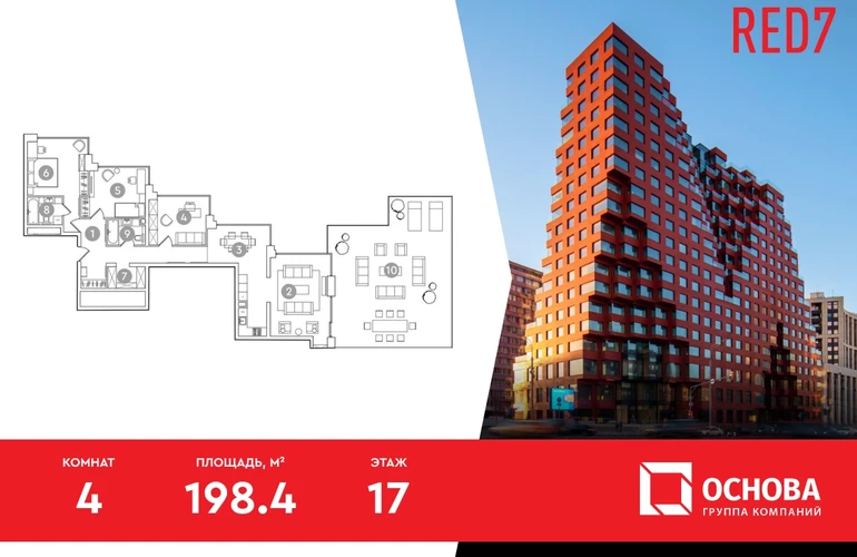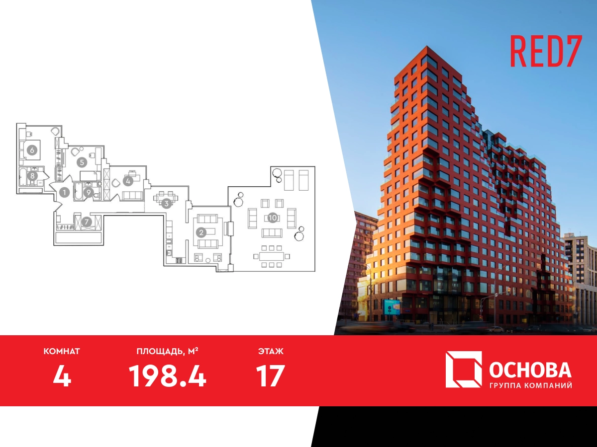 «RED7» — комплекс премиум-класса в самом сердце исторической Москвы, где каждая деталь продумана до мелочей. Продаются светлые 4-комнатные апартаменты площадью 198.40 кв. м, на 17 этаже престижного комплекса RED7, расположенного в самом центре Москвы, на первой линии Садового кольца. До Кремля всего 2,4 км. В шаговой доступности метро «Красные Ворота», Чистые пруды, уютные парки, театры, рестораны и все городские удобства. Расположение RED7 расположен в историческом центре Москвы, всего в 2,4 км от Кремля. Это новая достопримечательность, дополняющая облик города и ансамбль иконических зданий Садового кольца. Рядом с RED7 находятся бизнес-центры и офисы крупных компаний, штаб-квартиры банков, посольства и, безусловно, лучшие рестораны, магазины и места культурного досуга. Архитектура проекта Архитектурная концепция RED7 разработана всемирно известным голландским бюро MVRDV, с 1991 года создавшее множество выдающихся образцов прогрессивной архитектуры в Нидерландах, Франции, Дании, Испании, США, Японии, Китае и — впервые — в России, шаг за шагом пришло к форме RED7 как ответу русскому авангарду и сталинской архитектуре из далекого будущего. Этот дом не просто выдающееся архитектурное событие, он задает тон и формирует архитектурную ДНК Москвы будущего. Инфраструктура проекта RED7 — не просто апартаменты, это шаг в будущее жилых и общественных пространств. В комплексе будет создана «небесная гостиная» — клубное пространство для жителей со спортивной зоной, кинотеатром, коворкингом и местами для отдыха. Инфраструктура RED7 с открытым доступом включает премиальный фитнес-центр площадью 3,5 тысячи кв. м с полноразмерным бассейном длинной в 25м от, два ресторана от известных рестораторов, кафе, супермаркет премиального уровня, магазины и сопутствующие сервисы. Жители RED7 получают доступ ко всему набору сервисов дома, а общественные зоны дома создают идеальную атмосферу для общения, работы, развития и наслаждения жизнью. Технологии и материалы В апартаментах установлены полноразмерные панорамные окна в пол с шумоизоляцией от бельгийской компании Reynaers высотой до 4,5 метров. Особое внимание в RED7 уделяется микроклимату внутри дома: система вентиляции, очистки и кондиционирования воздуха в каждом апартаменте управляются удаленно через приложение iRED. В RED7 установлена система видеонаблюдения по всему комплексу, технология распознавания лиц и удаленный контроль охранных систем апартаментов. Паркинг Просторный 4-х уровневый паркинг расположен на подземных этажах. Количество машиномест — 284. Также предусмотрены кладовые, которые позволят освободить апартаменты от сезонных или редко используемых вещей Звоните и получите подробную консультацию, специалисты отдела продаж помогут выбрать наиболее подходящий вариант! Дистанционное оформление ипотеки, рассрочка и другие варианты покупки для вашего удобства.О застройщике